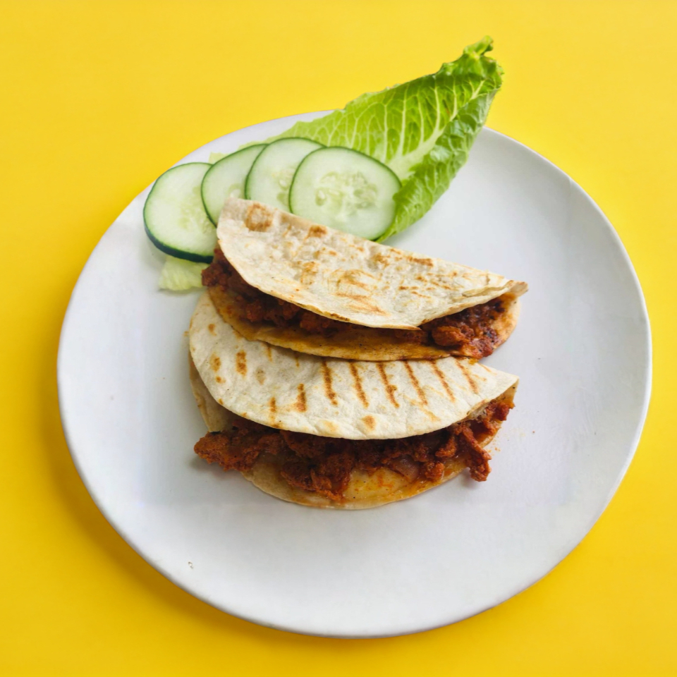 Orden de 2 quesadillas hechas con tortilla de harina, cochinita y queso manchego.