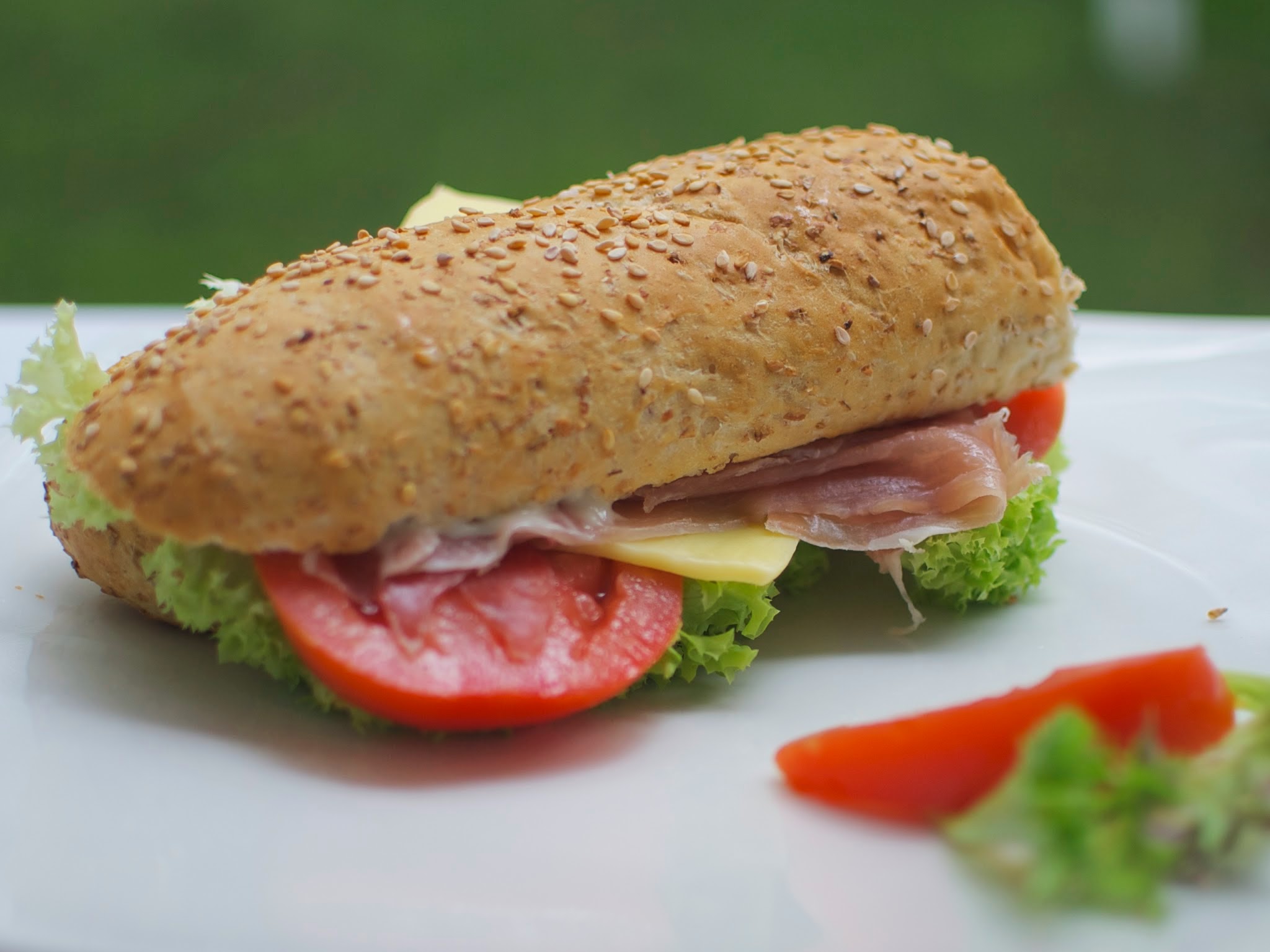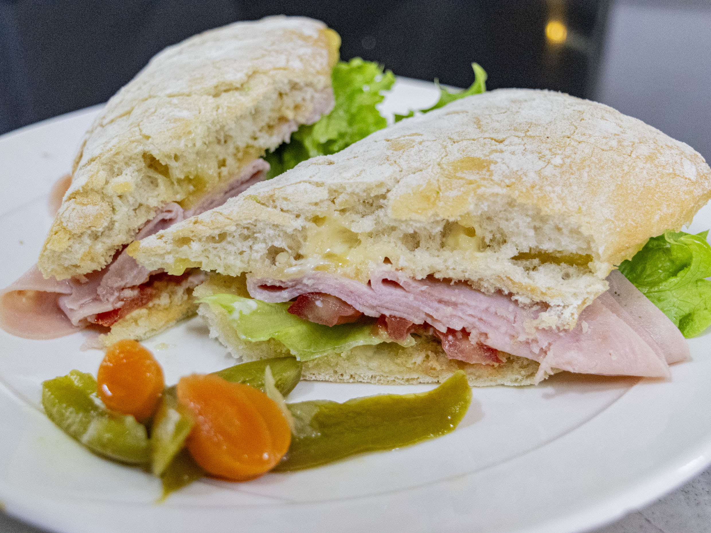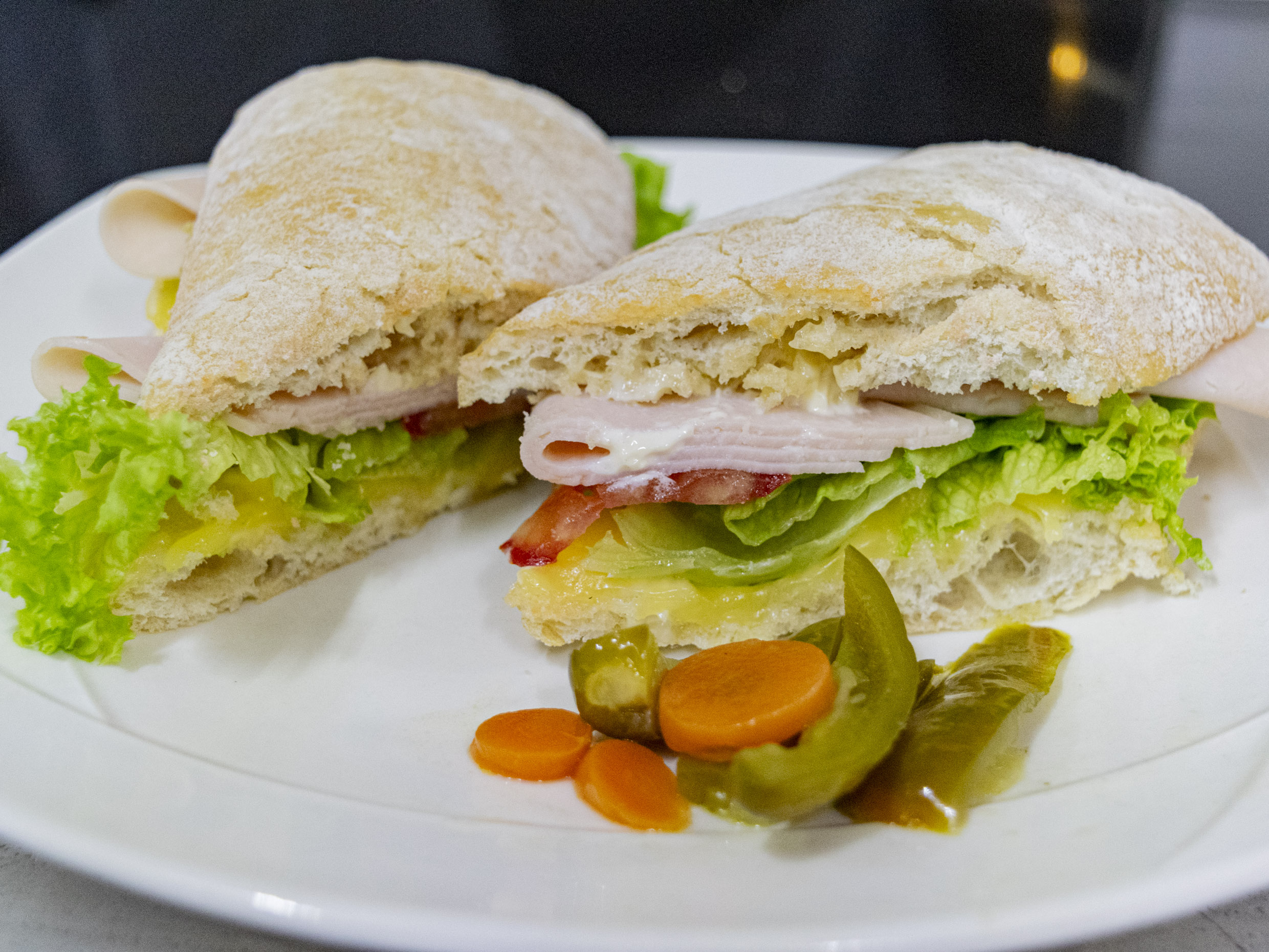 Pan de centeno con lechuga jitomate y queso manchego acompañado de aderezo