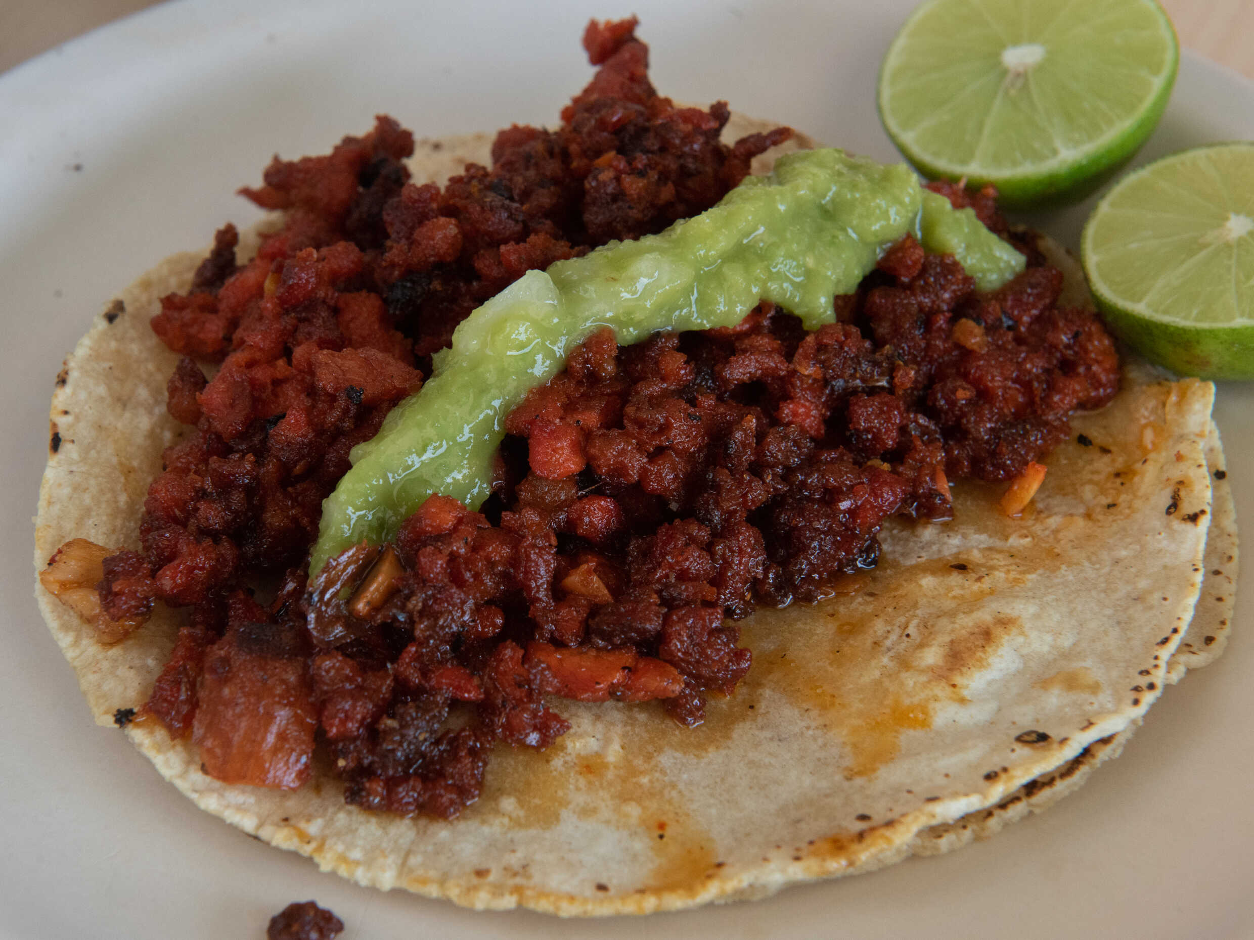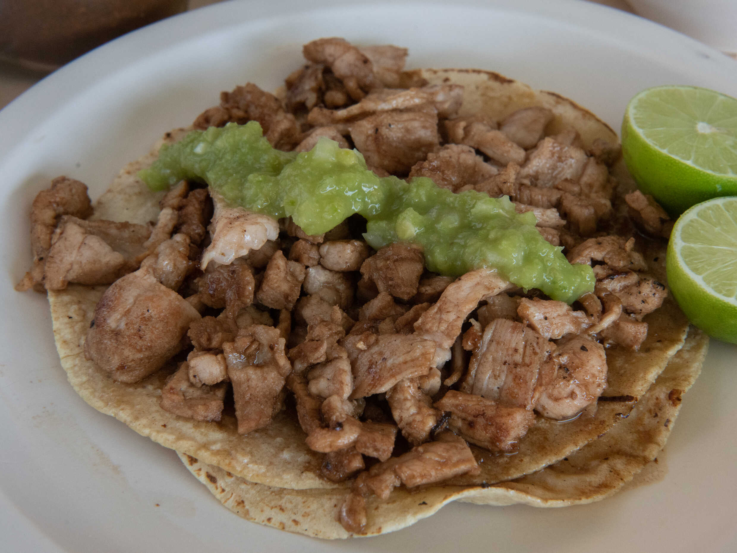 Dos tortillas hechas a mano con carne e cerdo bien picada
