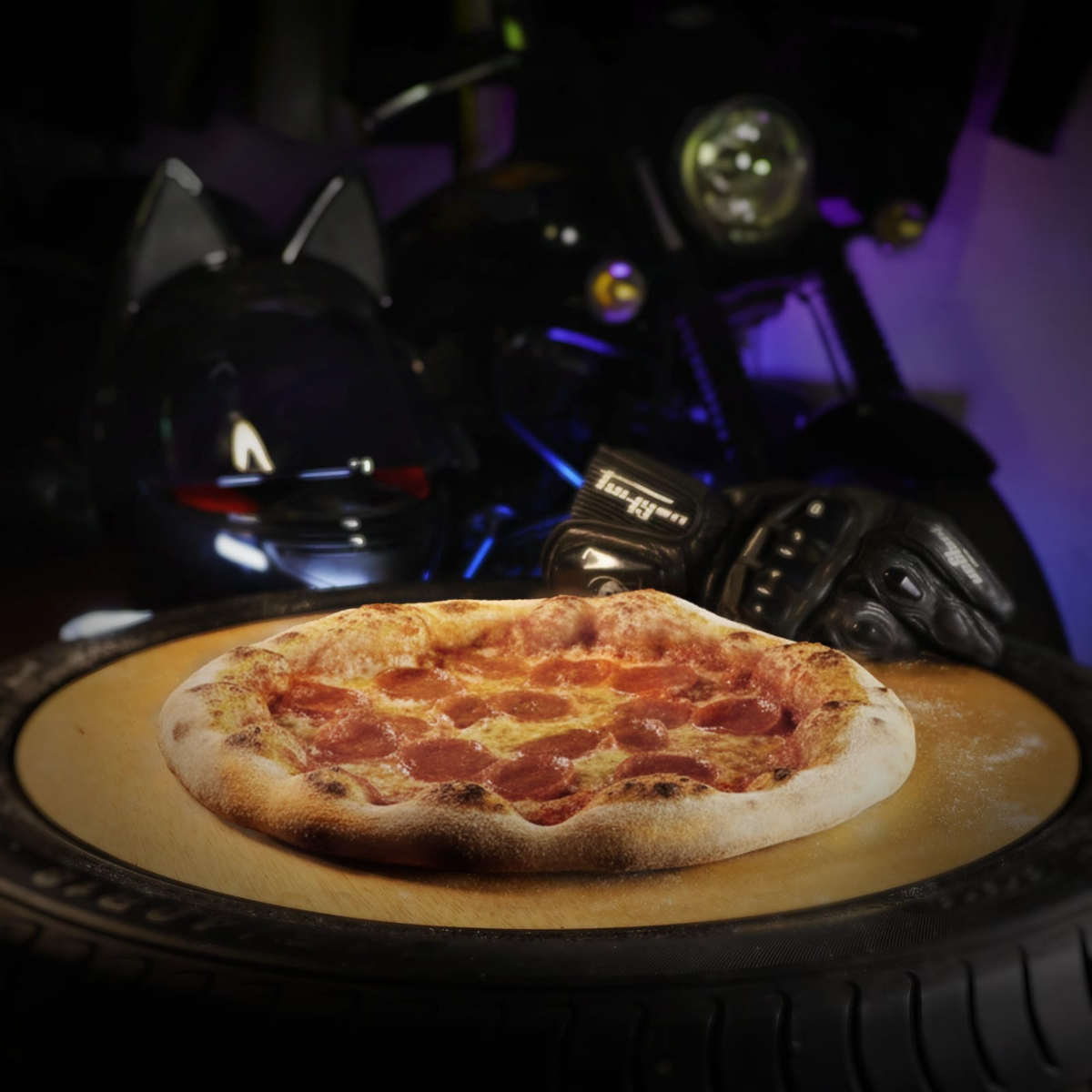 La calsica pizza de 30cm con queso mozzarela, salsa de tomate y pepperoni