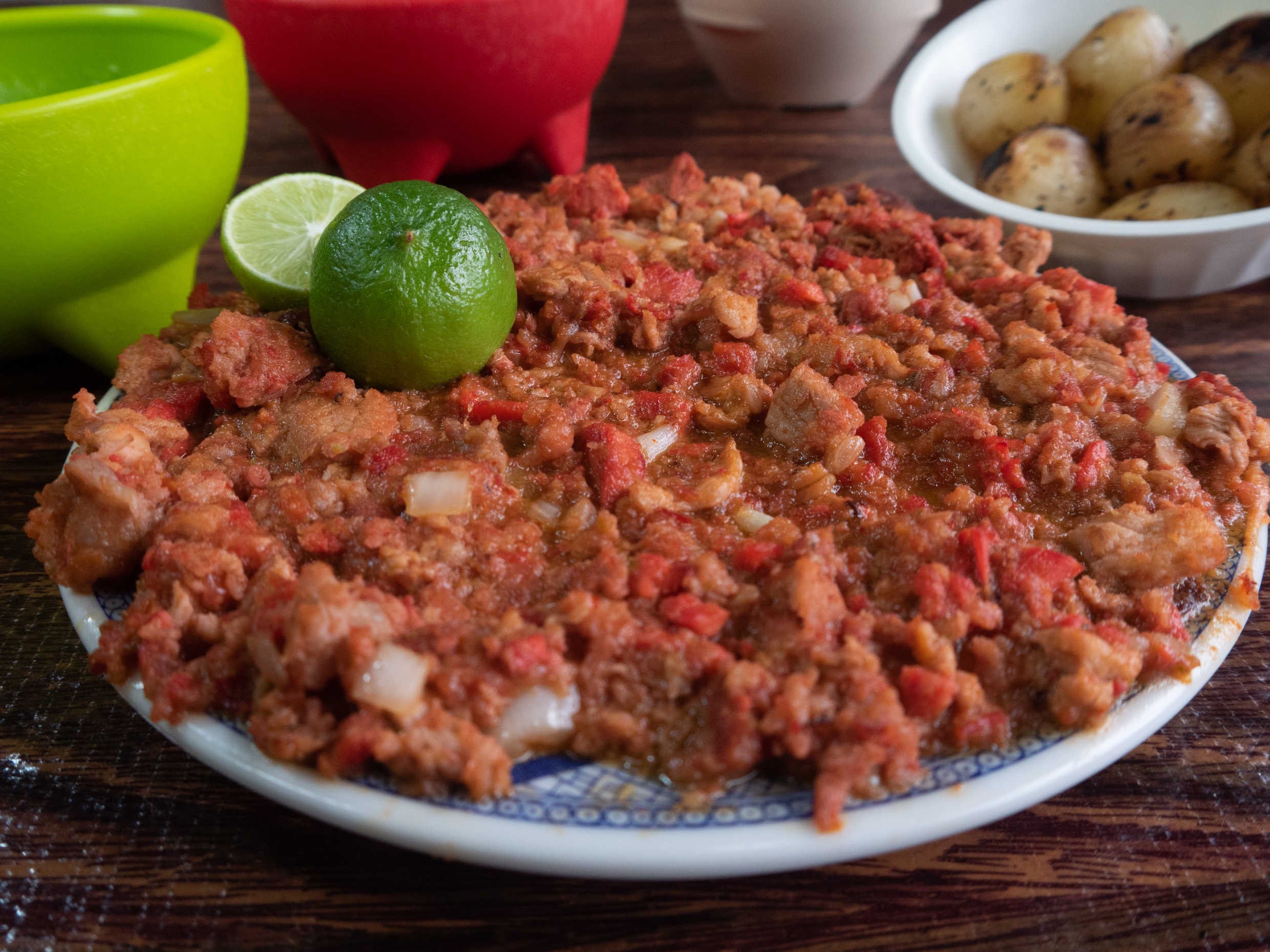 Adobada con chorizo, incluye tortillas y limones.