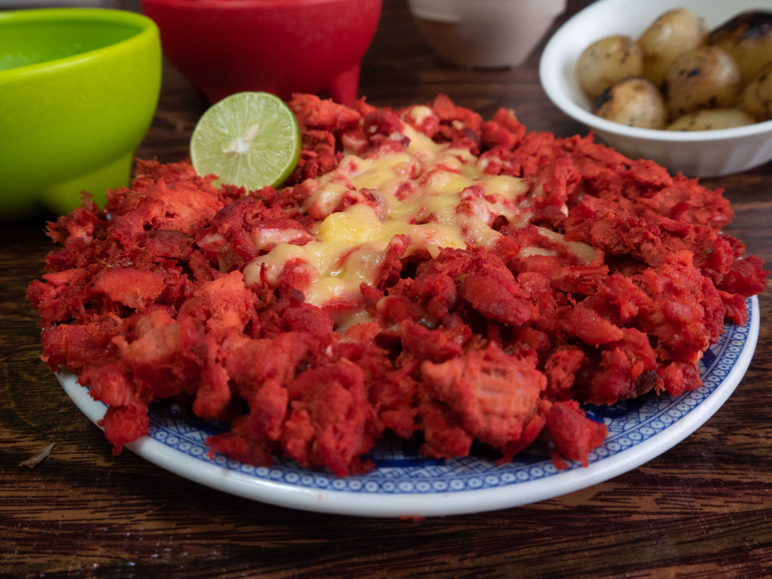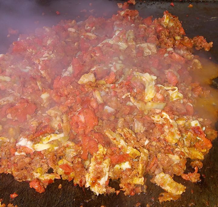 300 gr aprox. Adobada, chuleta, chorizo queso oaxaca salsas verde, roja y jugo de limón. Todo se mezcla en la plancha, incluye tortillas y limones. (platillo personal)