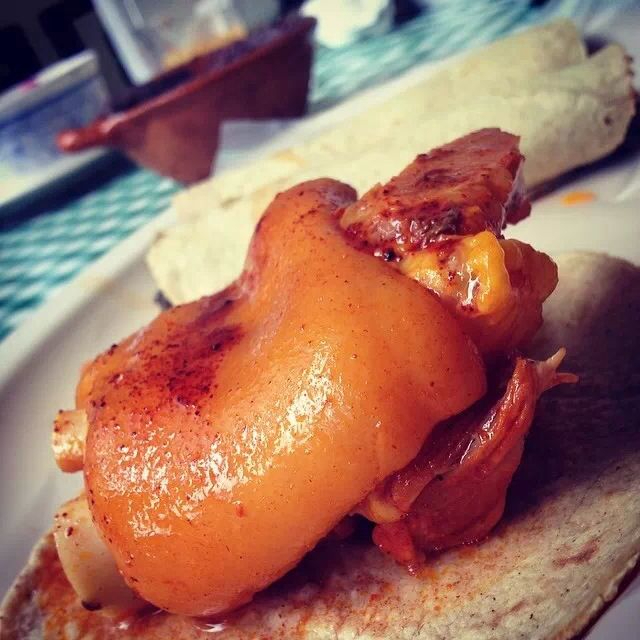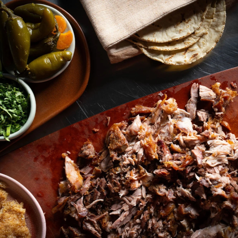 100 gr. (aprox.) de carnitas al gusto en tortilla de maíz