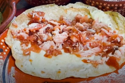 Deliciosas quesadillas acompañadas de carnitas y queso Oaxaca.