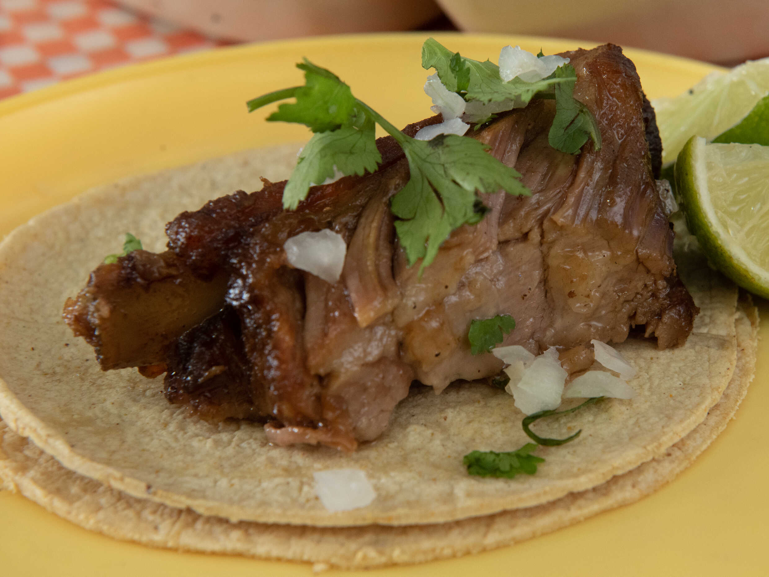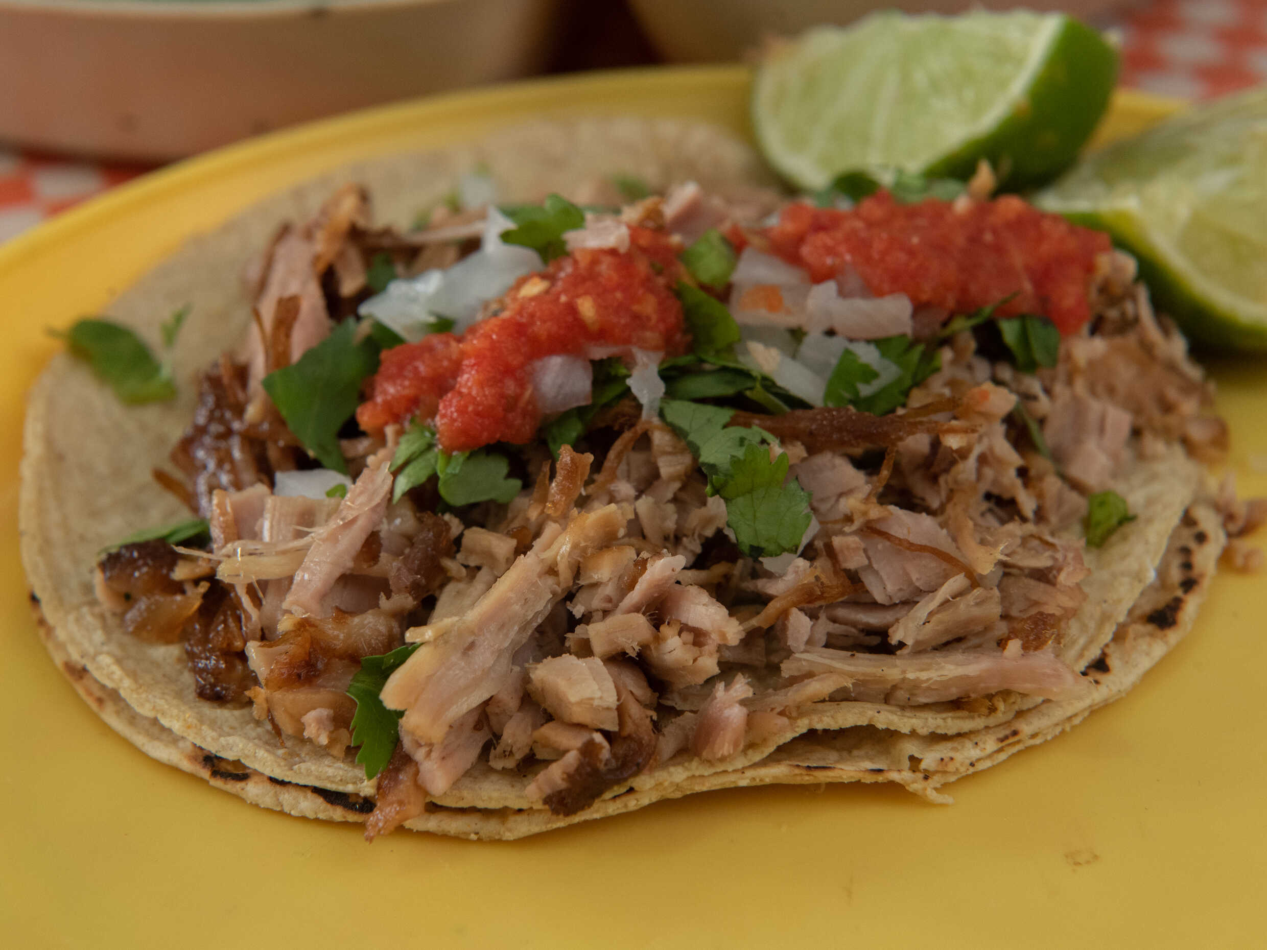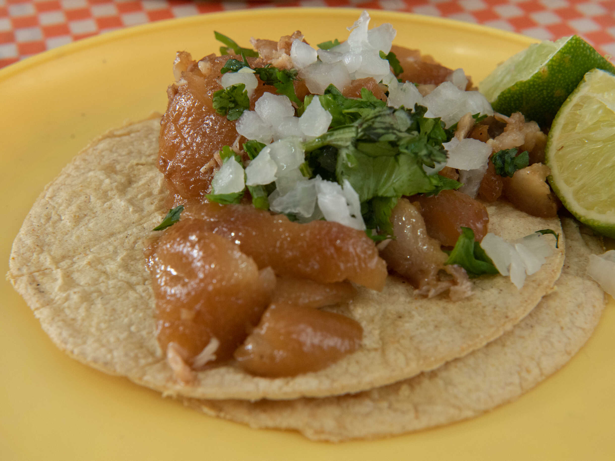 Maciza, cuerito y buche. Incluye salsa verde o roja, cebolla, cilantro, limones y cebollitas con habanero.