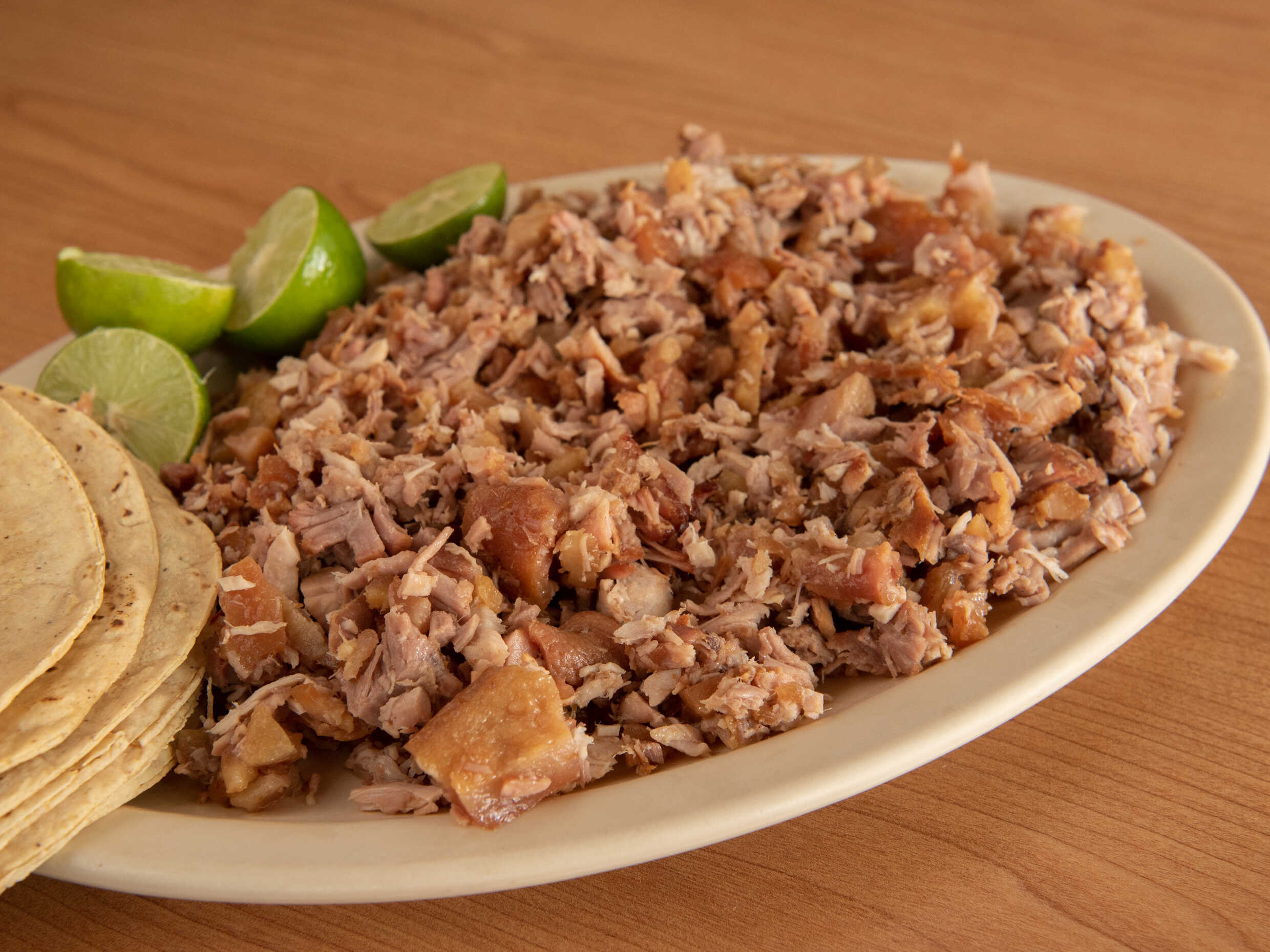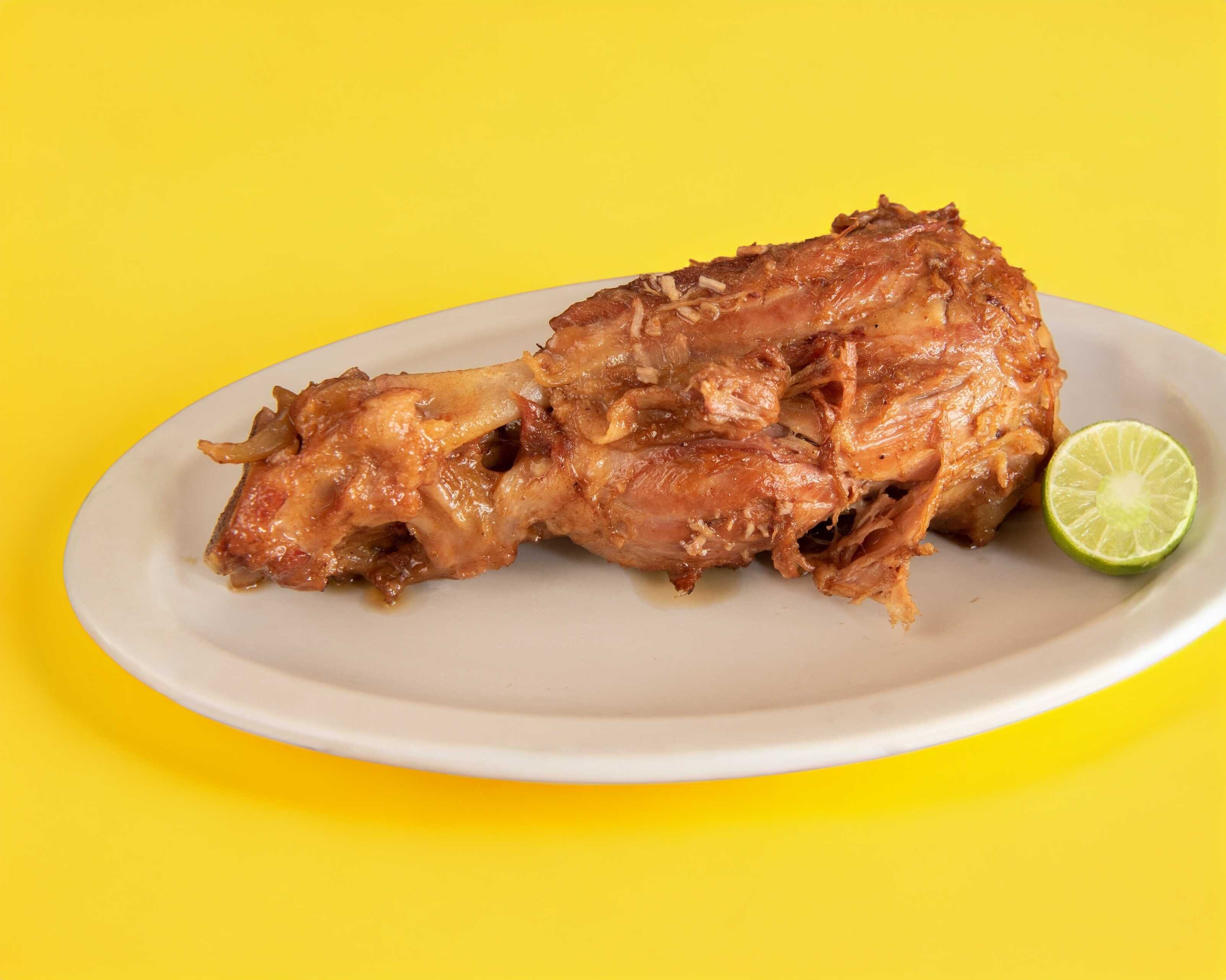 1 taco de 60 gr con chamorro,con salsa, verdura y limón por separado