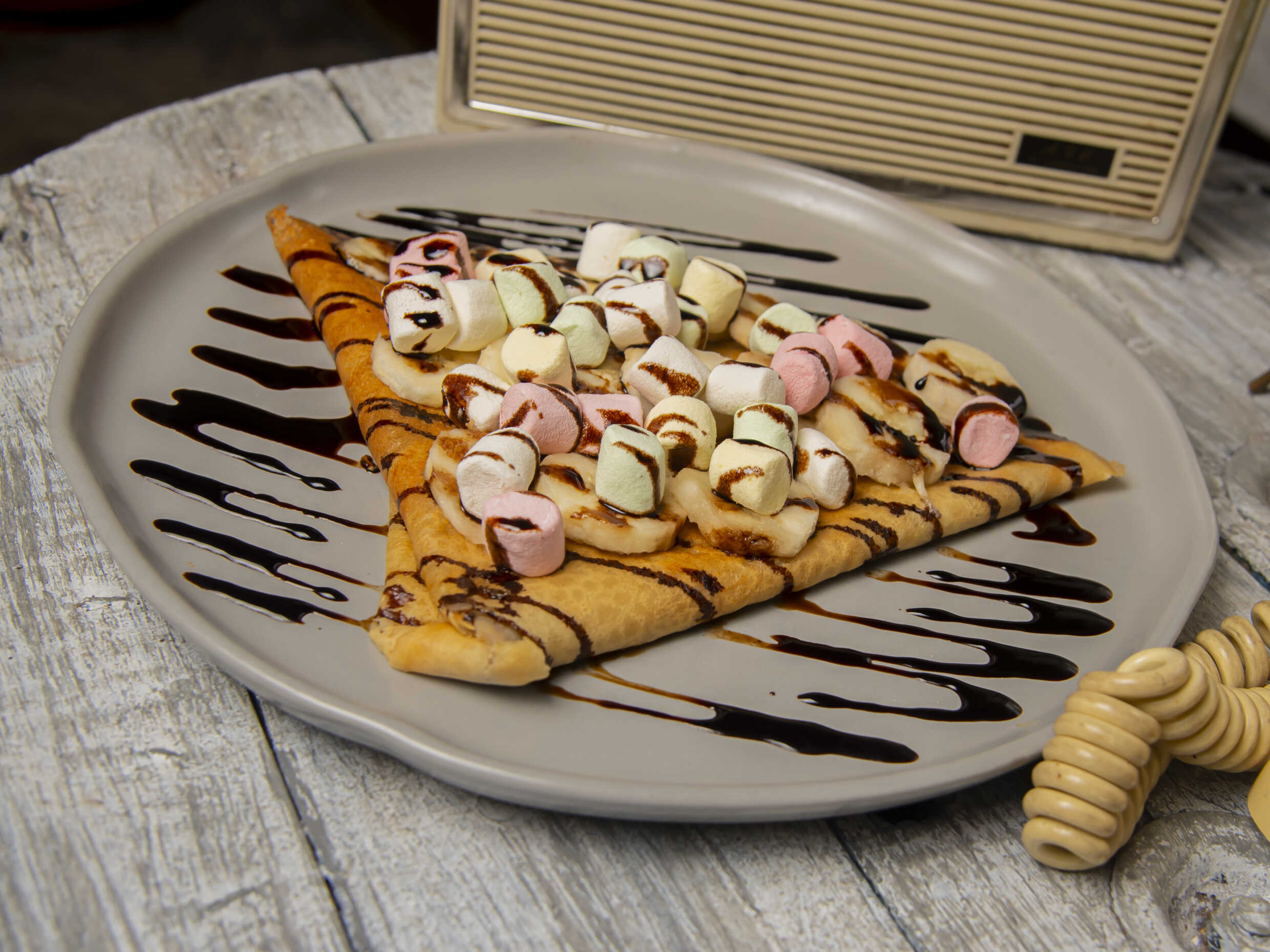 Crepa de nutella, plátano y bombones.