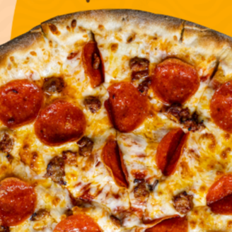 Pizza base pepperoni doble con queso mozzarella, con peso total aprox 650 g.