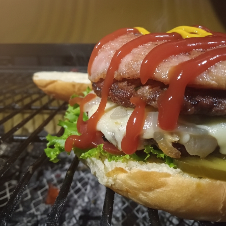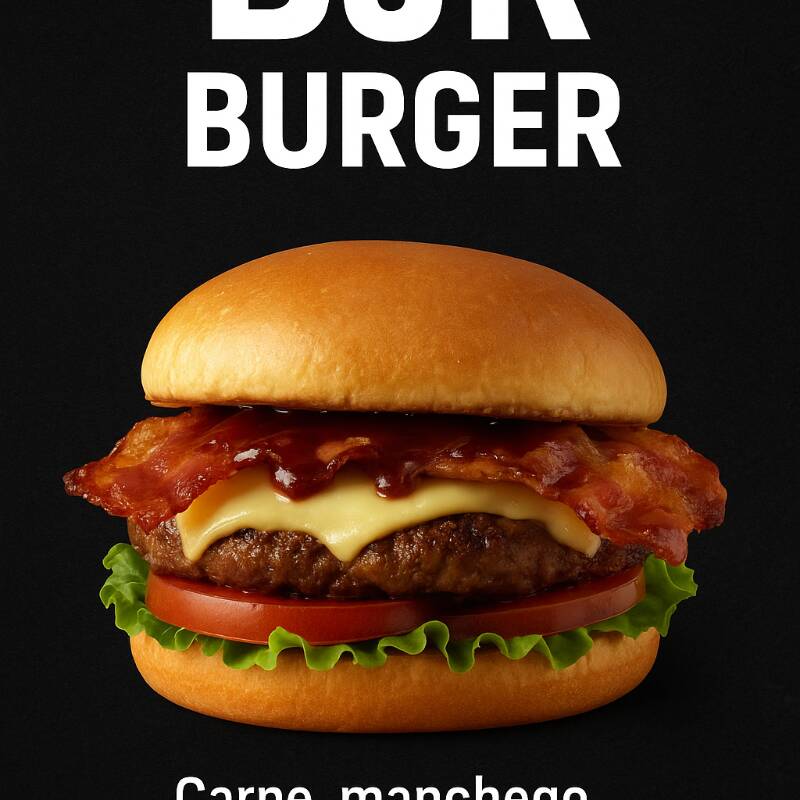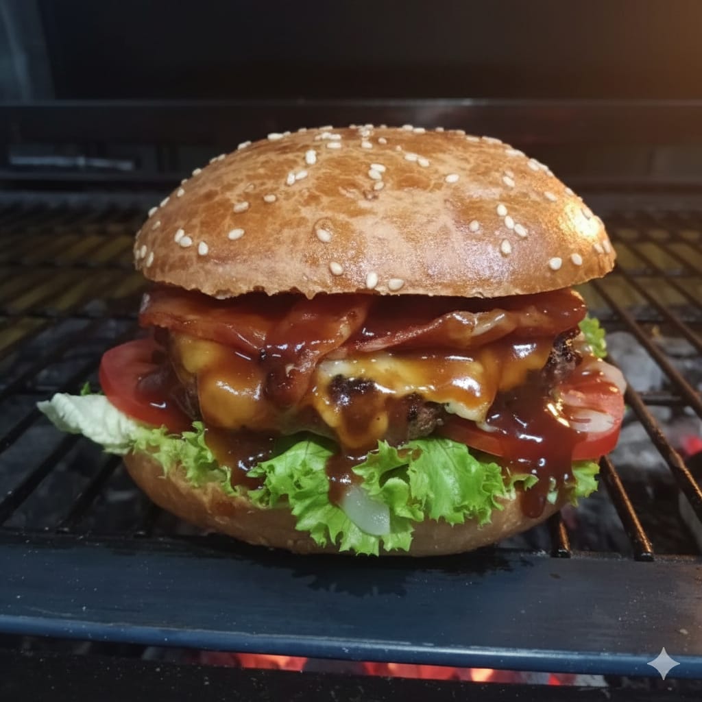 Carne de res, queso manchego, tocino crujiente y salsa BBQ. ¡Perfecta para los amantes del sabor ahumado! 🍔🧀🥓