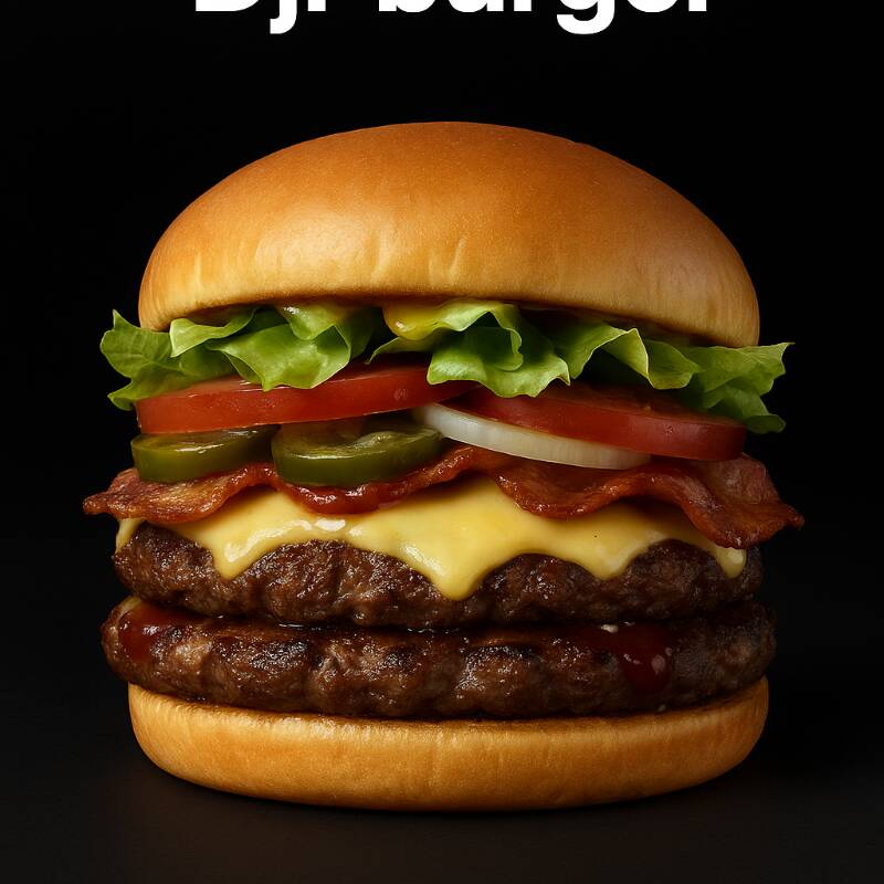 Doble carne de 110 g cada una, queso manchego fundido y tocino crujiente, acompañada de mostaza miel y catsup, más lechuga fresca, cebolla, jalapeño y jitomate. La versión grande y potente de la jr.