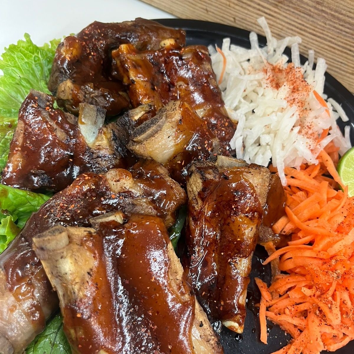 1/2 kilo de costillas bbq con acompañante de verdura