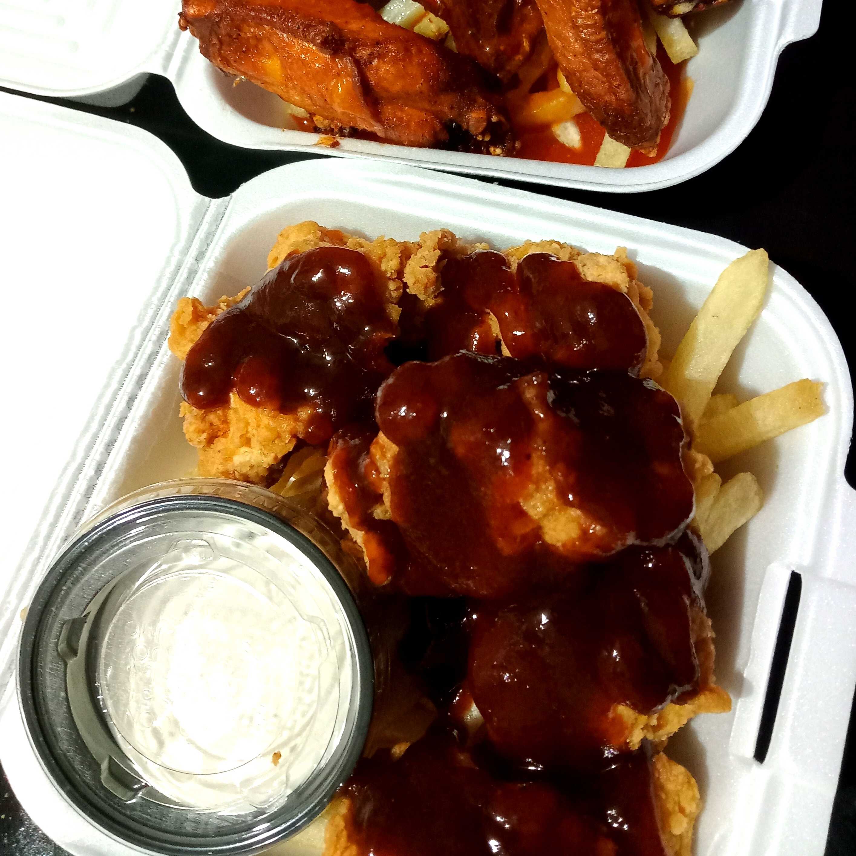 6pz de Alitas marinadas con 150g de papa a la francesa