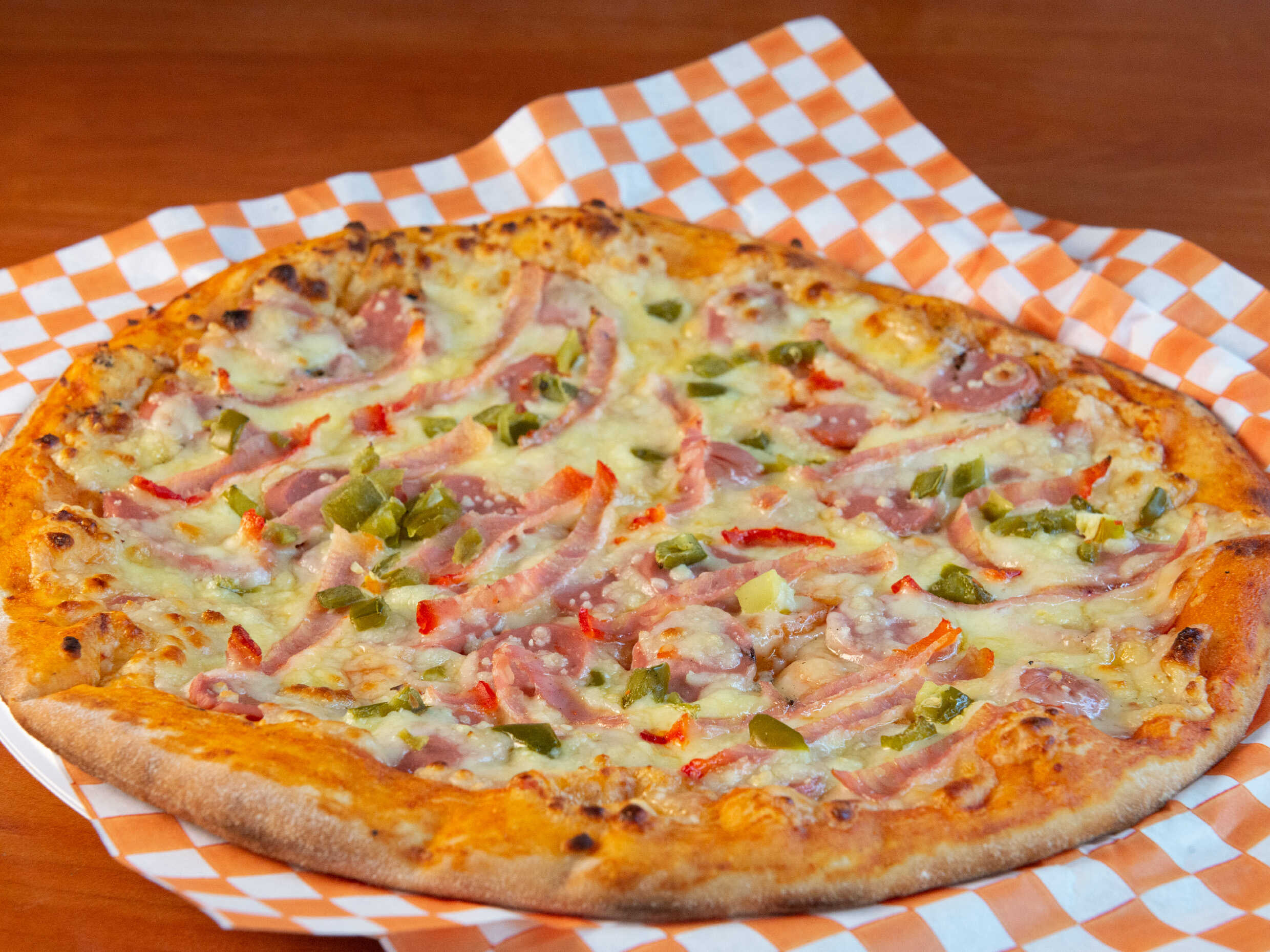 Jamón, pepperoni, champiñones, queso amarillo, manchego, Oaxaca, chorizo y chiles, tamaño varia según tu elección