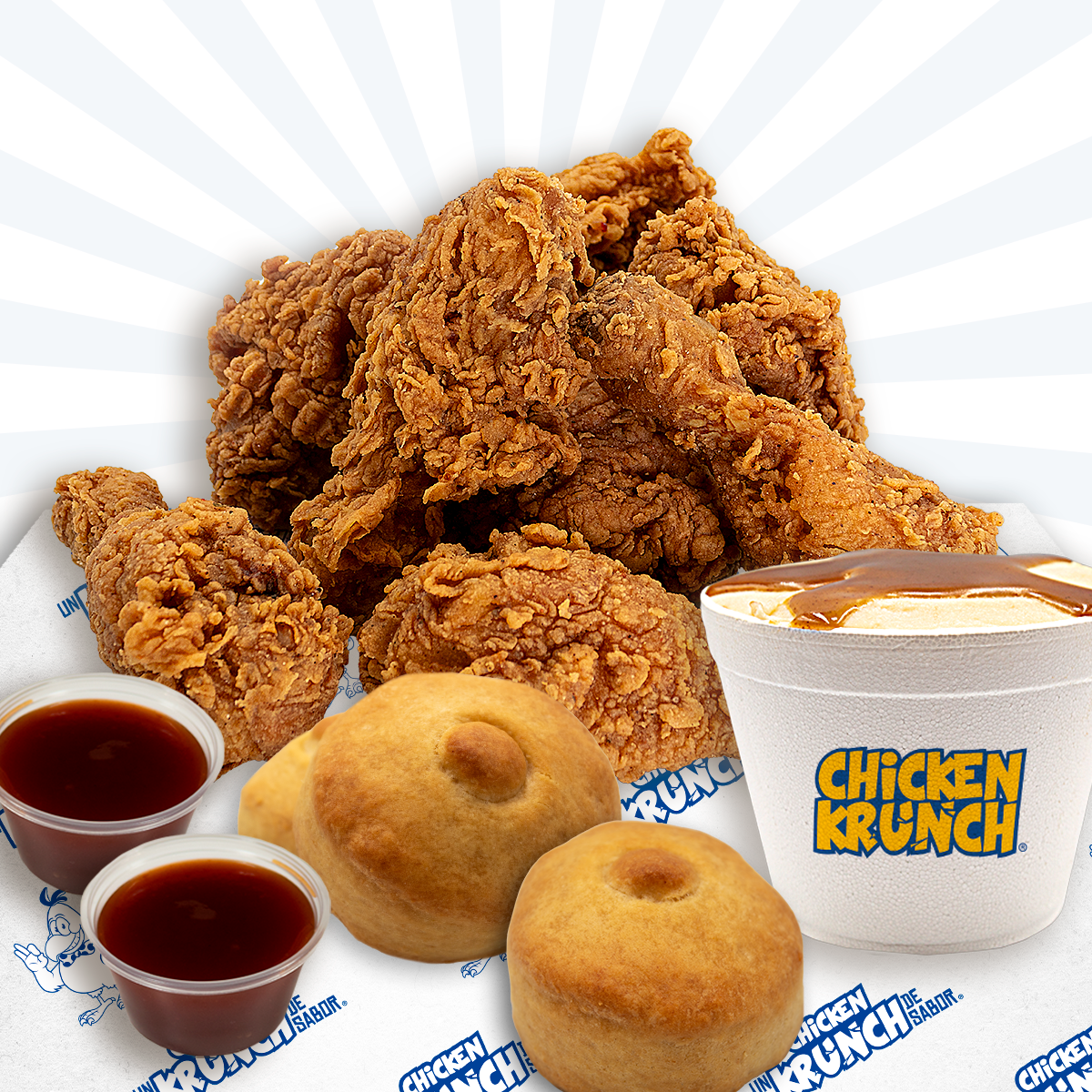 6 pzs Krunch + 2 Complementos + 2 Bisquets + 1 Topping de Salsa