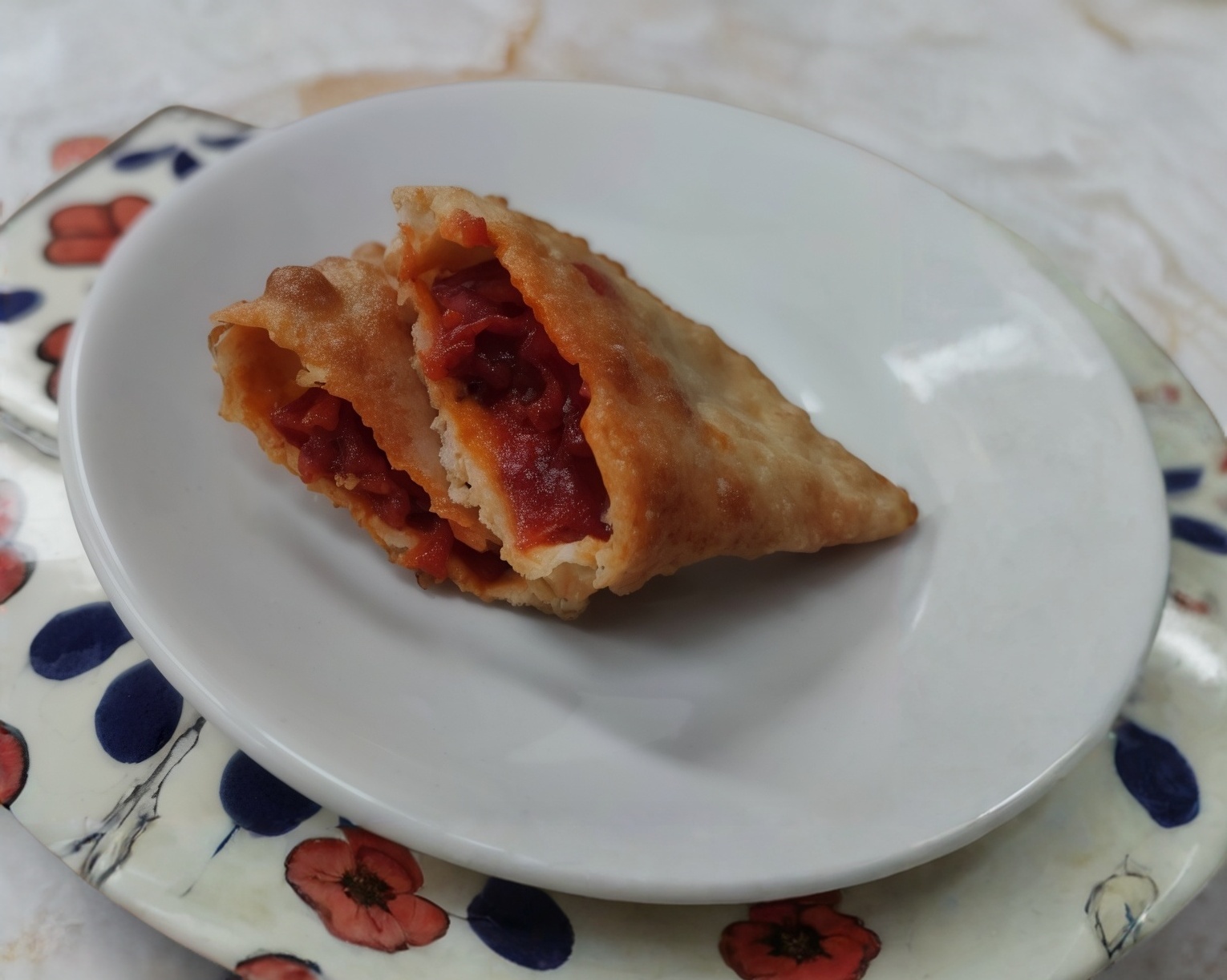 Salteadas con un caldillo de jitomate rellenas de pollo acompañadas con lechuga queso y crema.
