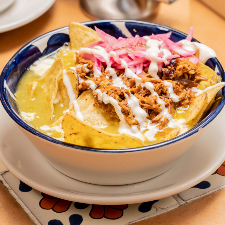 Chilaquiles rellenos de Cochinita pibil, pollo y queso manchego