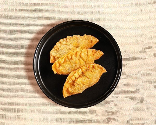 3 Gyozas rellenas de carne de cerdo y vegetales. Acompañadas de salsa agridulce.