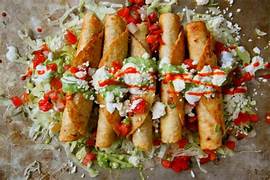 Orden de tacos Dorados 5pz preparados con crema , queso , lechuga y nuestra salsa especial