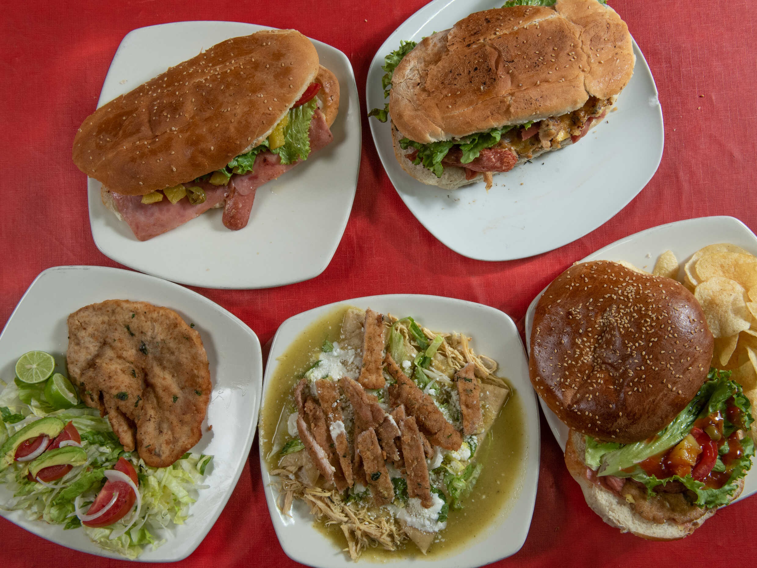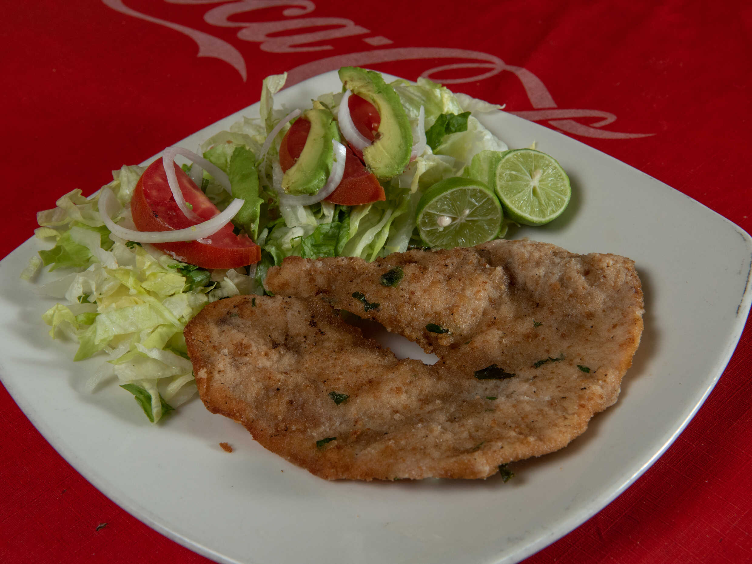 Con ensalada, arroz, frijoles, tortillas y salsa.