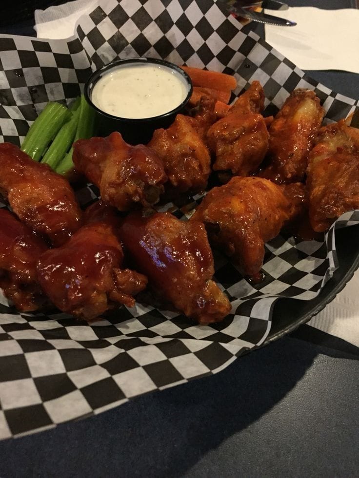 6 pzas De alitas hechas al momento, aderezo a tu gusto, bastones de apio y zanahoria con aderezo ranch.