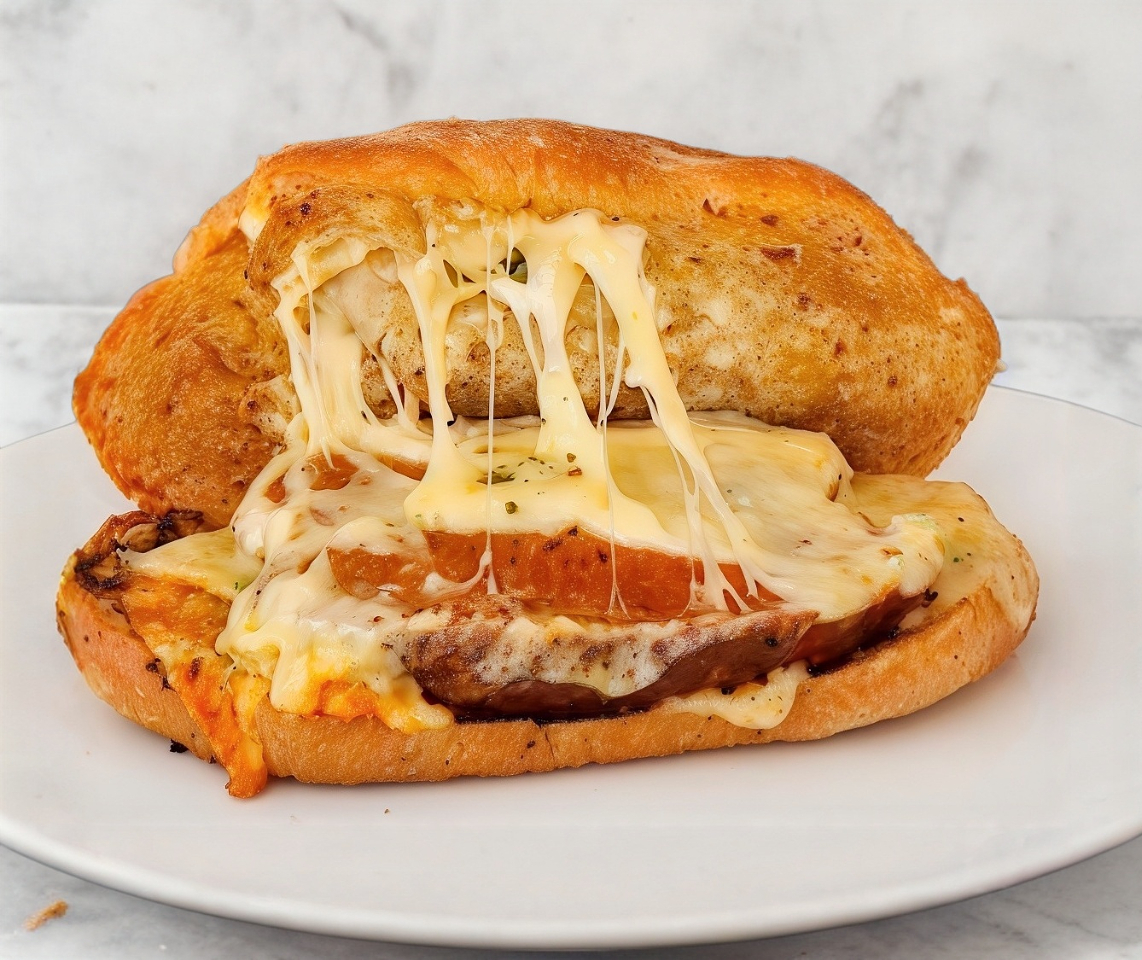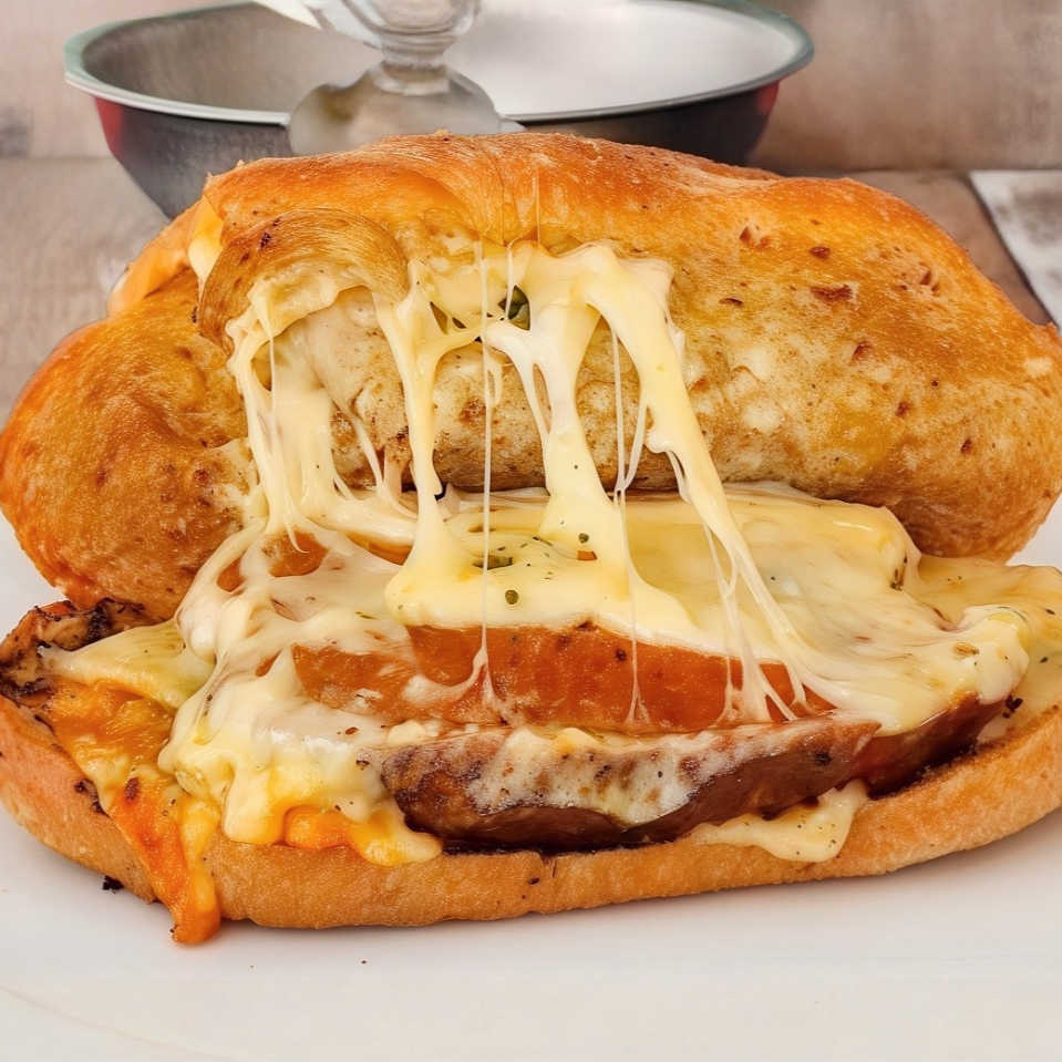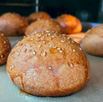 Pan de masa madre con 60 gr de chorizo, 25 gr de queso cheddar y (5-10 gramos) de salsa chimichurri.
