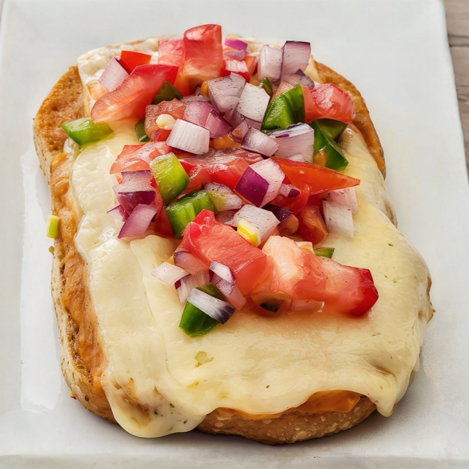Pan de masa madre, frijoles refritos de la casa, queso cheddar acompañado de pico de gallo.