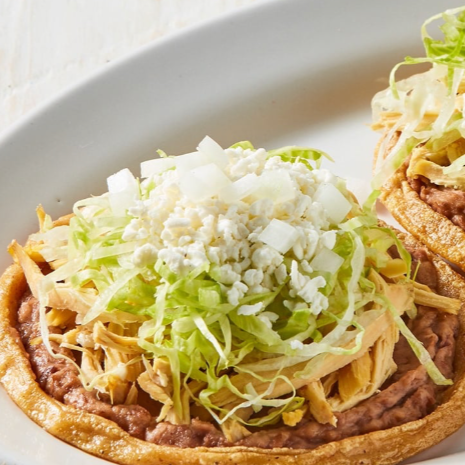 Sope de tortilla de maíz con pollo, queso, crema, lechuga y salsa