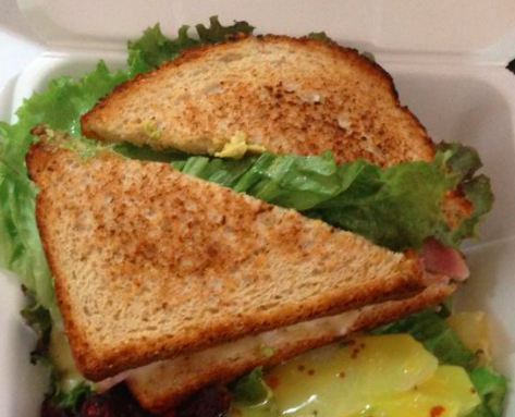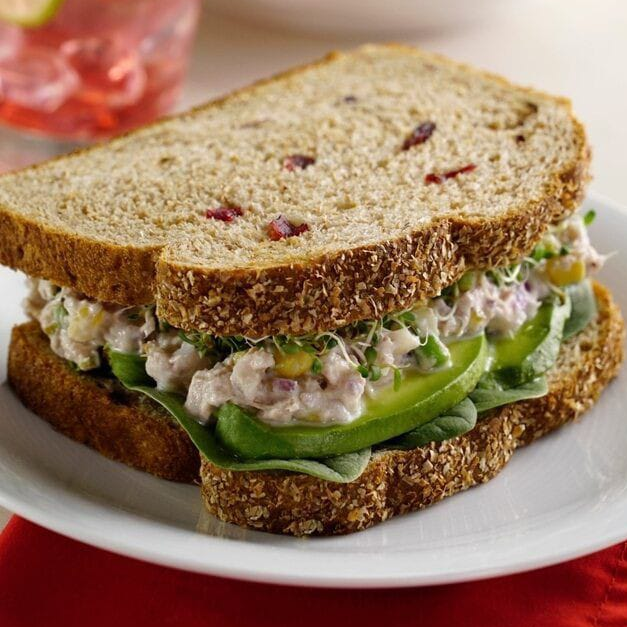 2 Rebanadas de Pan de Caja Integral, Lechuga, Aguacate, Ensalada de Atún, Jitomate, Cebolla, Chile Serrano y Garminado