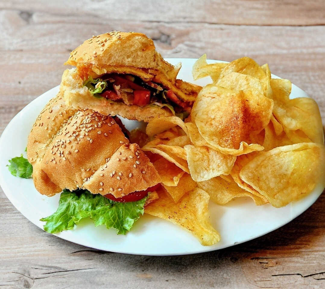 Pechuga Asada, Jamón, Queso Manchego, Lechuga. Jitomate, Aguacate, Chiles en Vinagre. Guarnición de Papas Tipo Chips