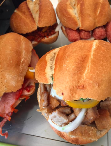 Salchicha de Cerdo, Mayonesa, Frijoles, Lechuga, Jitomate, Aguacate, Cebolla, Chiles en Vinagre y Pepino