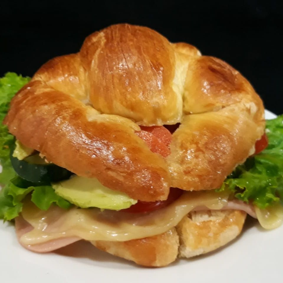 Cuernito con Jamón y Queso Manchego. Lechuga, Jit*1 + Complemento a tu desayuno*1