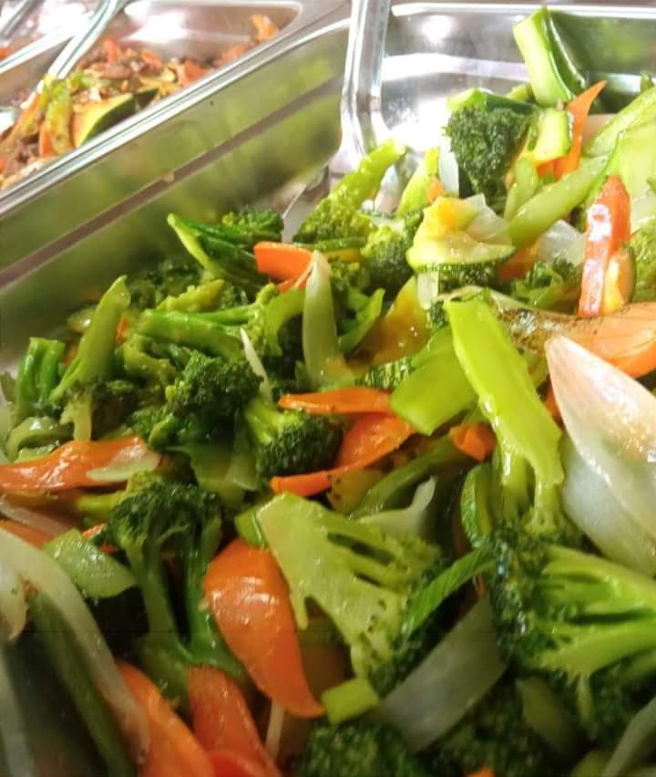 Arroz frito al estilo chino con vegetales y un toque de soya. Porción de aproximadamente 160 gramos.