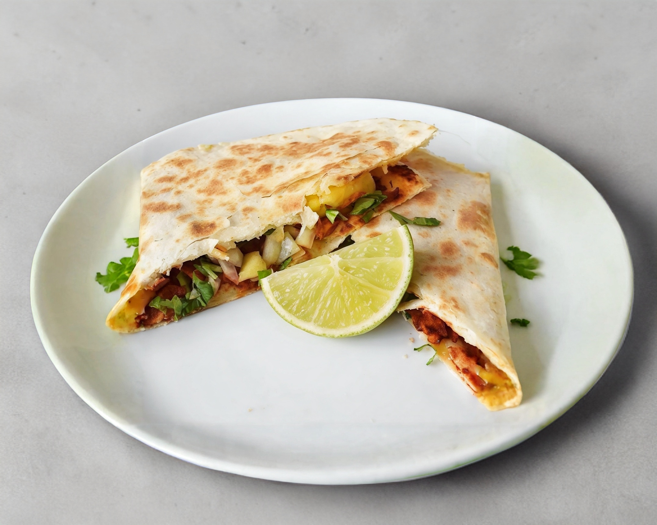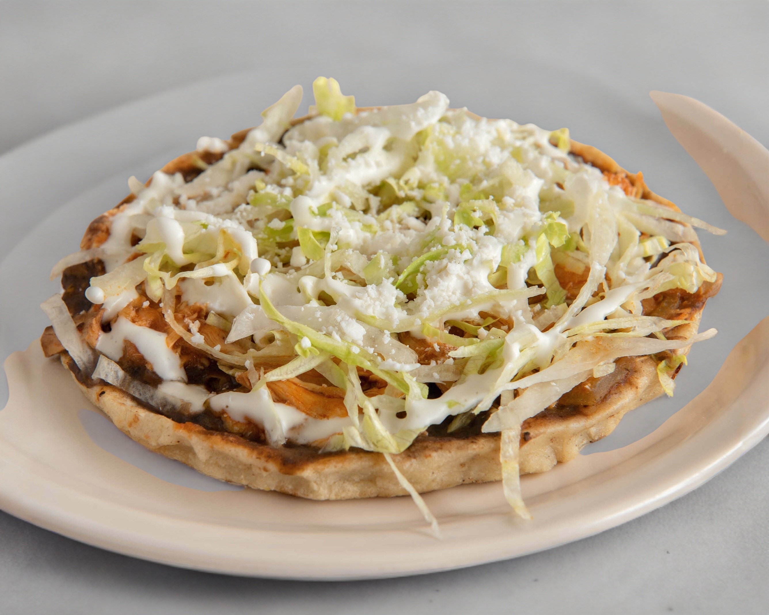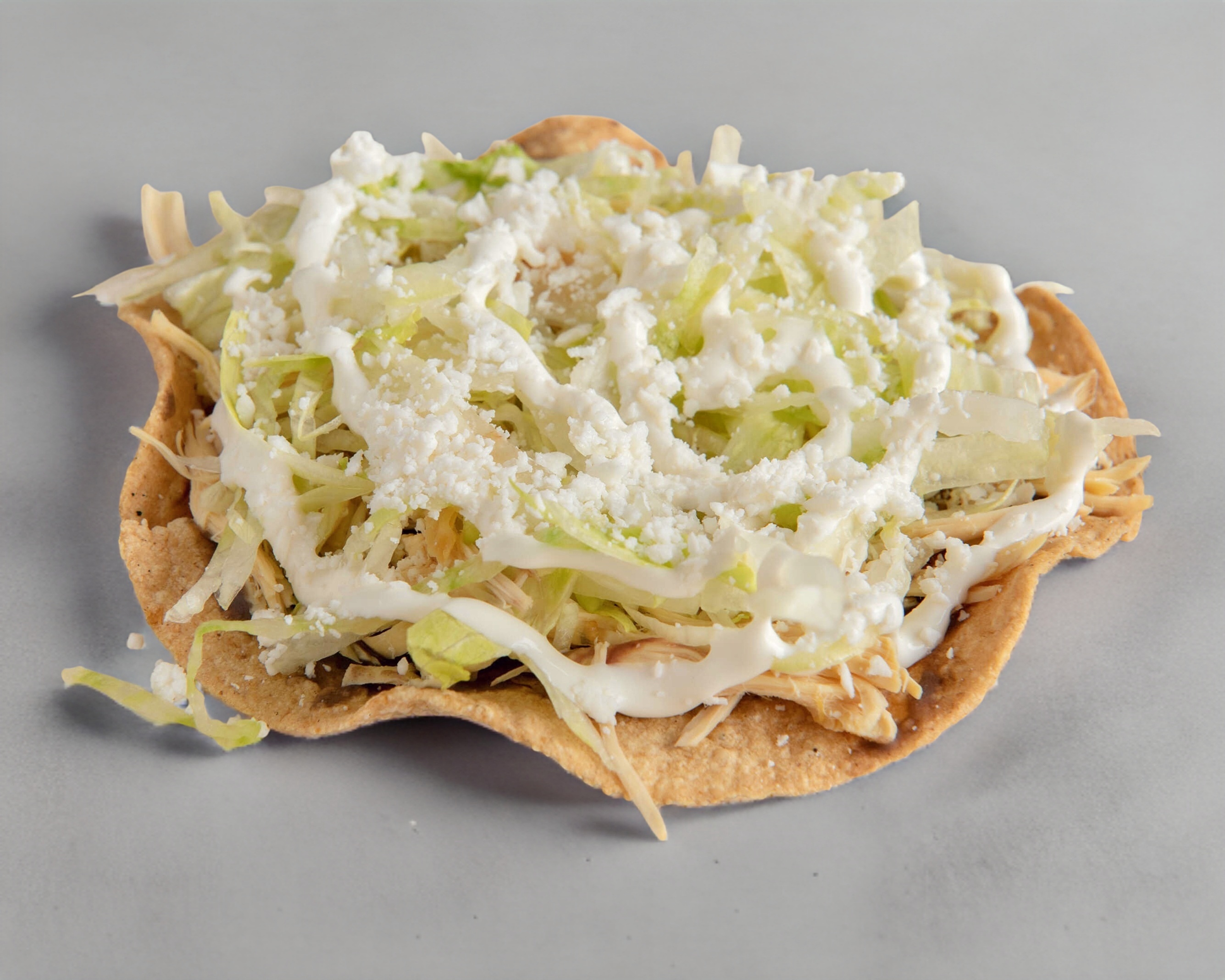 4 Piezas con con pollo, lechuga, queso, crema y cebolla.