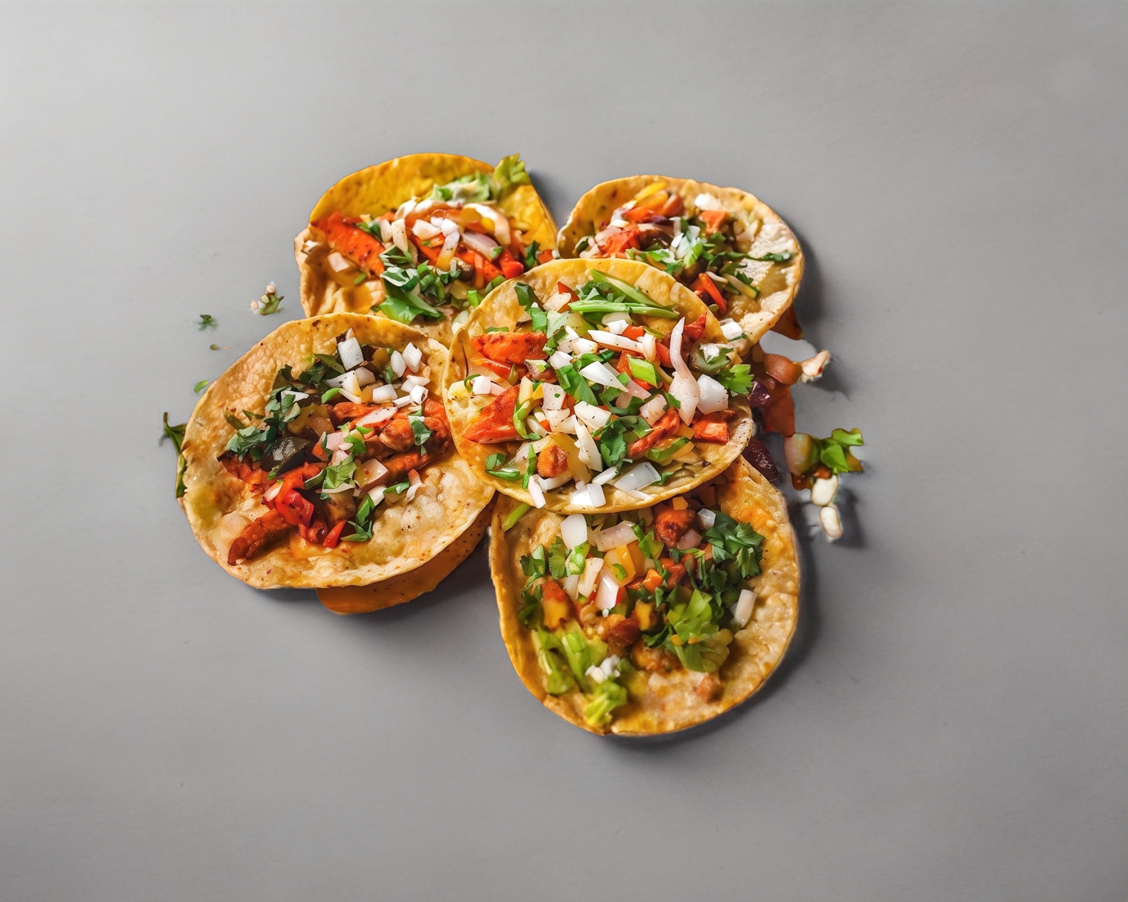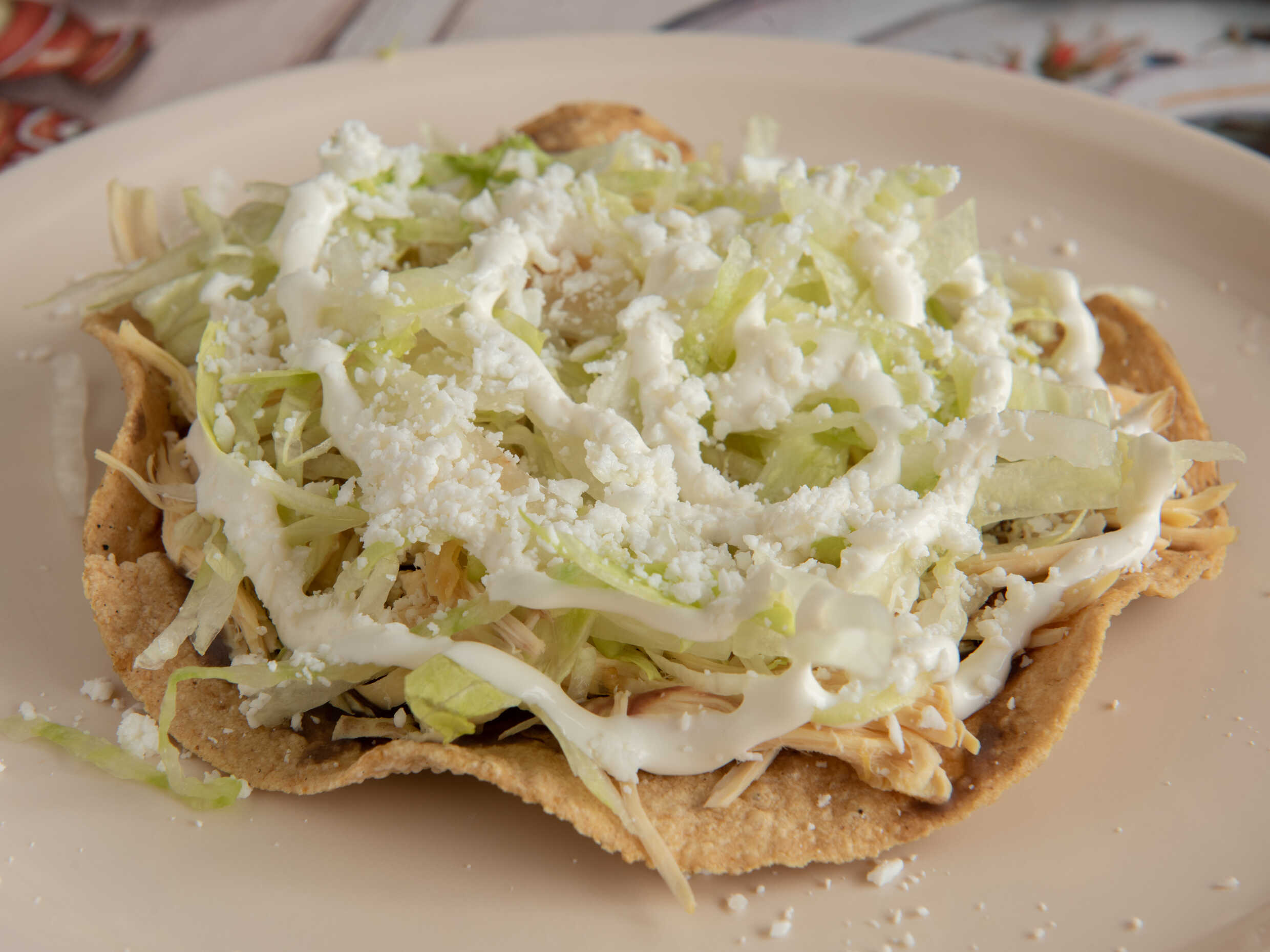 4 Piezas de tacos de su elección con lechuga, queso y crema.