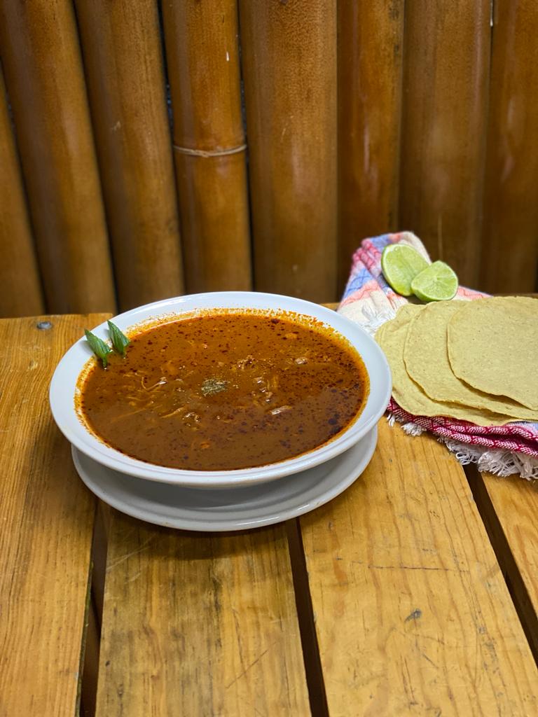 Sope de papas con chorizo, frijoles, lechuga, queso y crema