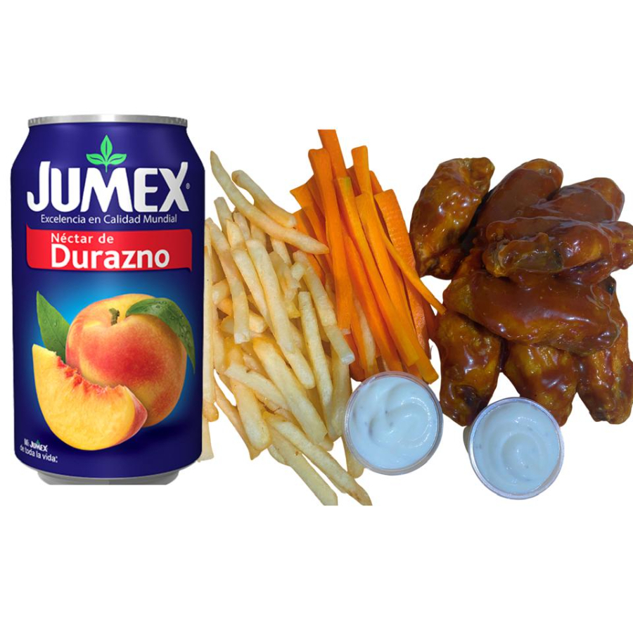 8 alitas + papas y refresco a elegir