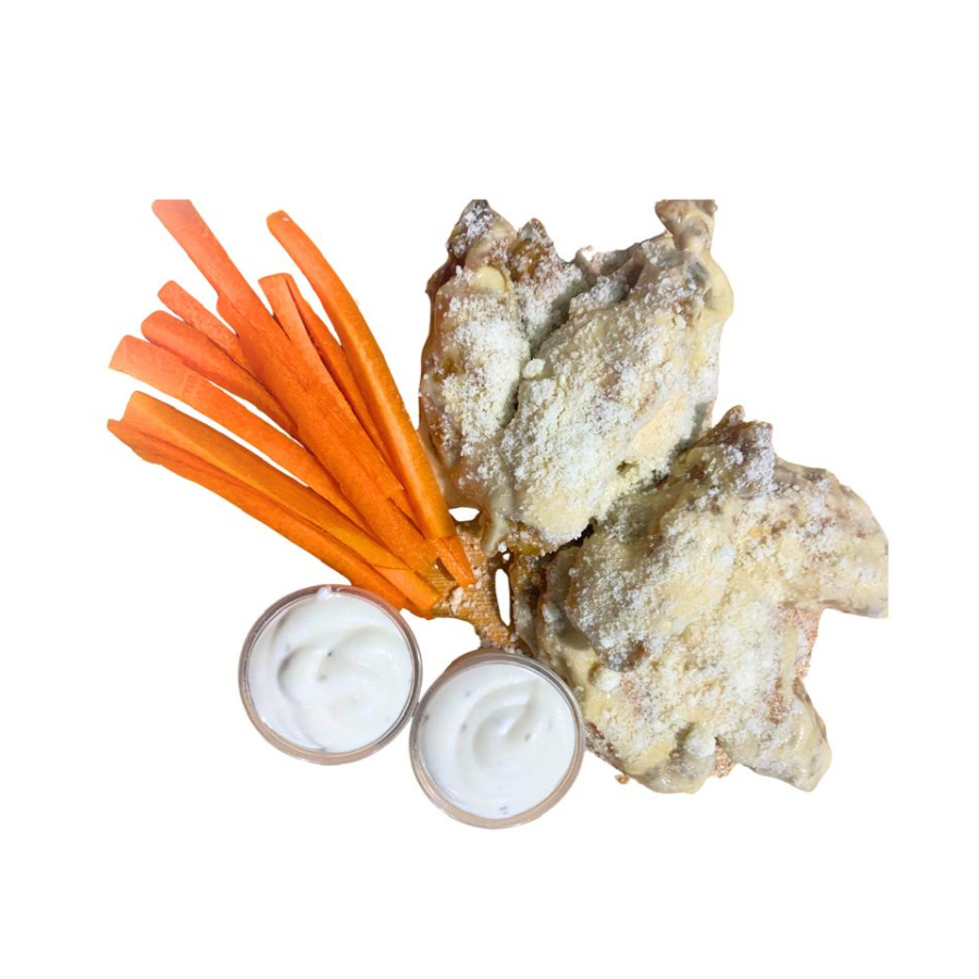 8 alitas sabor a elegir + aderezo ranch y zanahoria