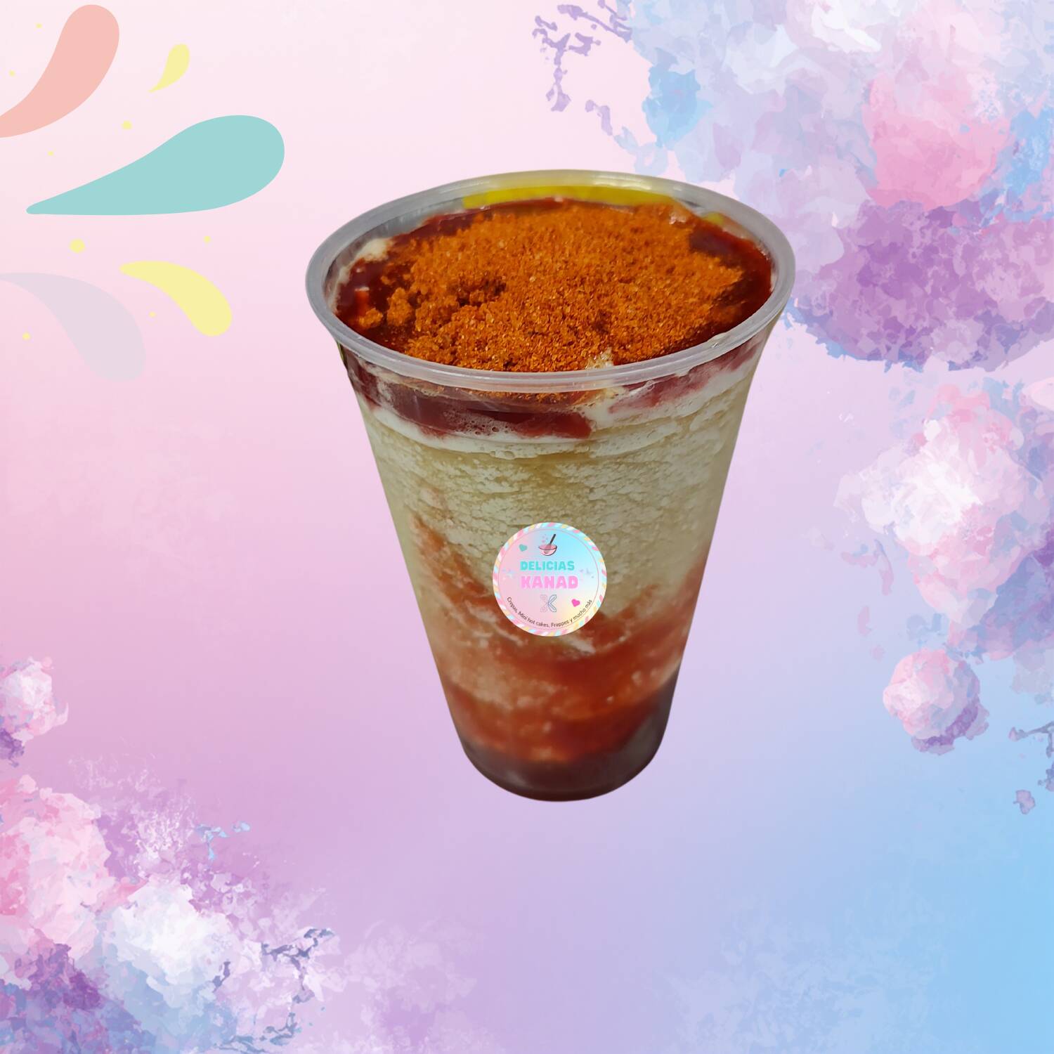 Hielo granizado con sabor a elegir y chamoy; 16 onzas. Va acompañada de una banderilla de tamarindo picoso.