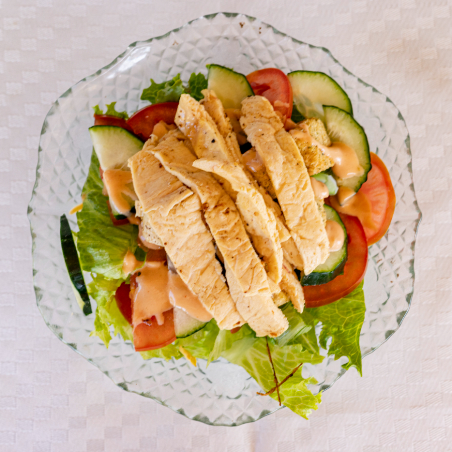¿Andas buscando algo fresco pero sabrosón? Esta ensalada no falla: 250 gramos de pollo asado bien jugoso, 200 gramos de lechugas crujientes, pepino, jitomate, un aderezo y que es ligera pero llena, ideal pa’ cuando quieres comer rico sin quedarte dormido después.