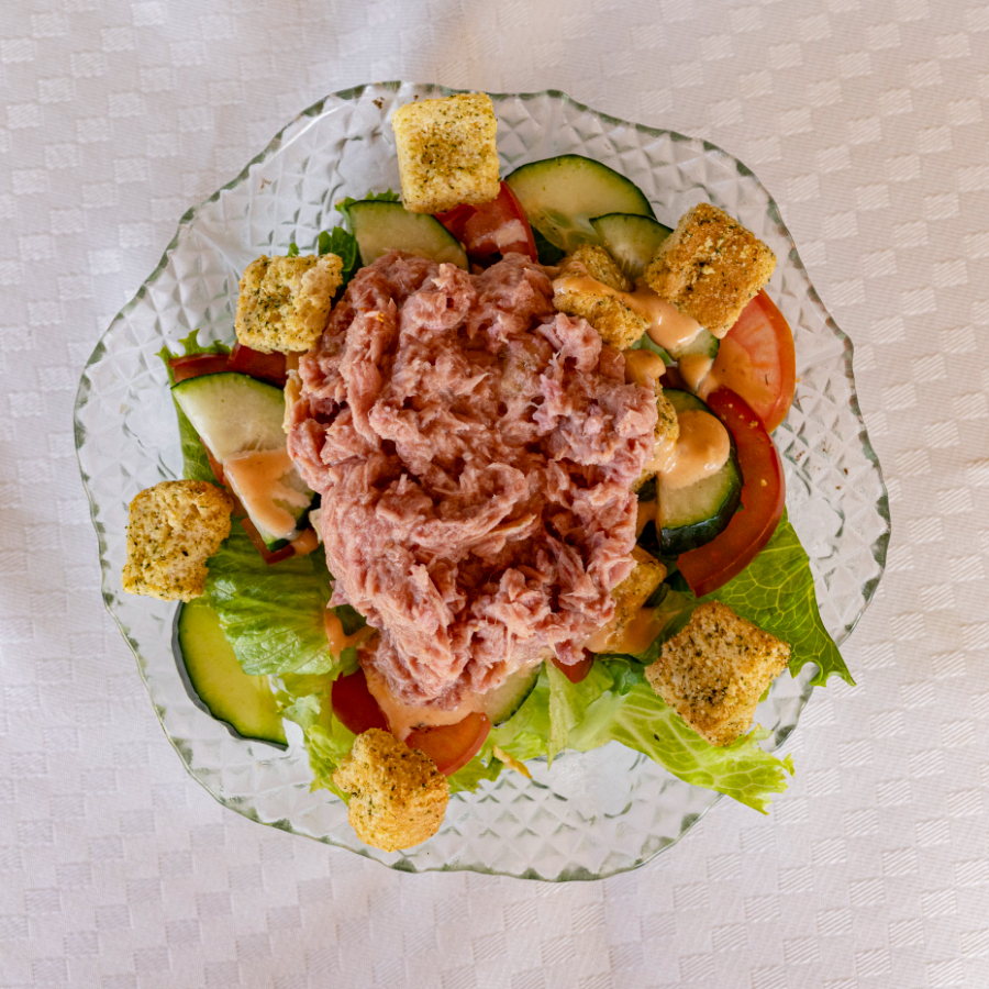 Delicoso Bowl de 400 gramos de un mix de lechugas, jitomate, pepino y 200 gramos de atún de agua, acompañado son crotones y aderezos.