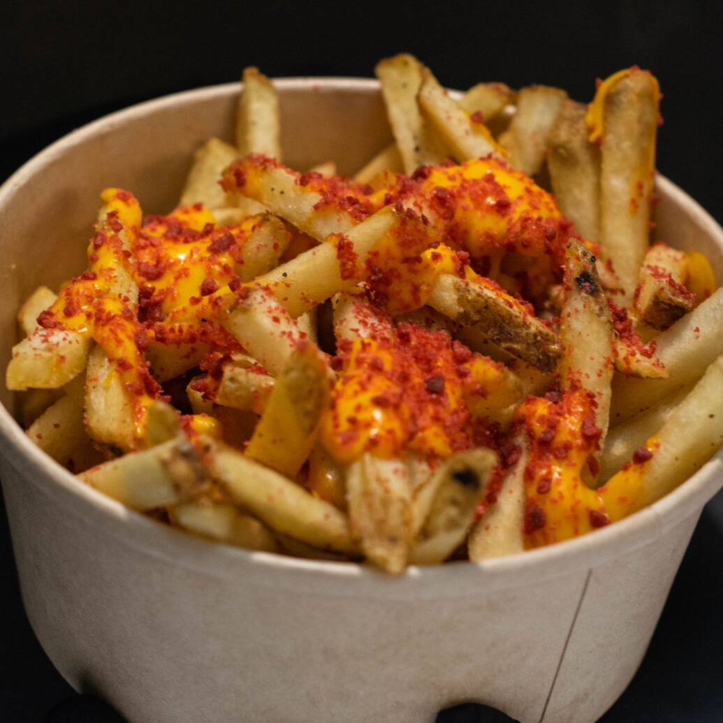 250gr de papas a la francesa bañadas en queso de nachos, coronadas con boneles de pollo bañadas en tu salsa favorita