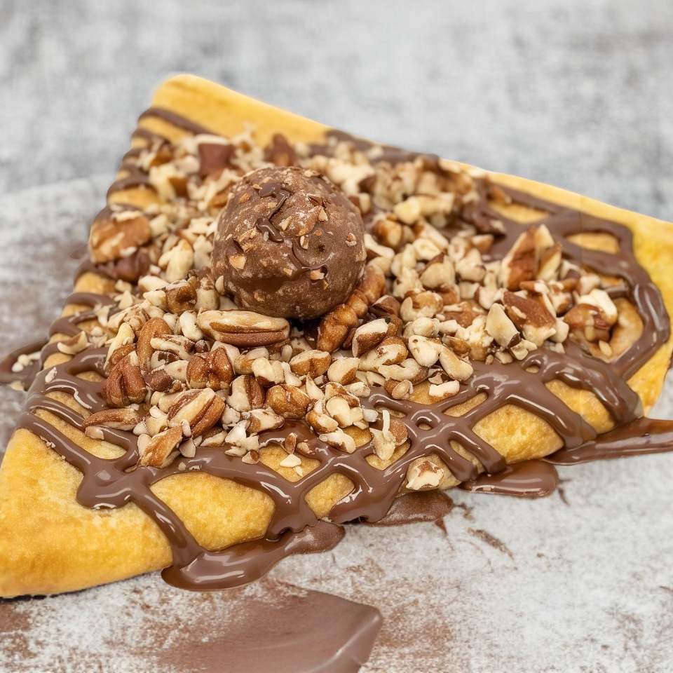 Crepa con crema de avellanas,nuez y 3 ferrero