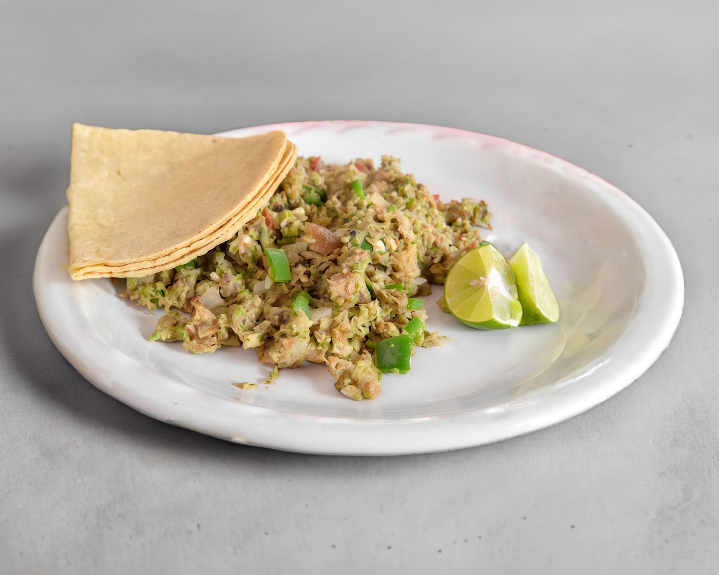 Carnitas a la plancha con huevo y salsa.