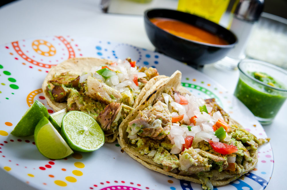 Auténtico taco mexicano con tortillas de maíz recién hechas, doble capa para más sabor y consistencia. Relleno con 80 g de suculenta carne campechana —una mezcla perfecta de maciza y cuerito doraditos al punto.