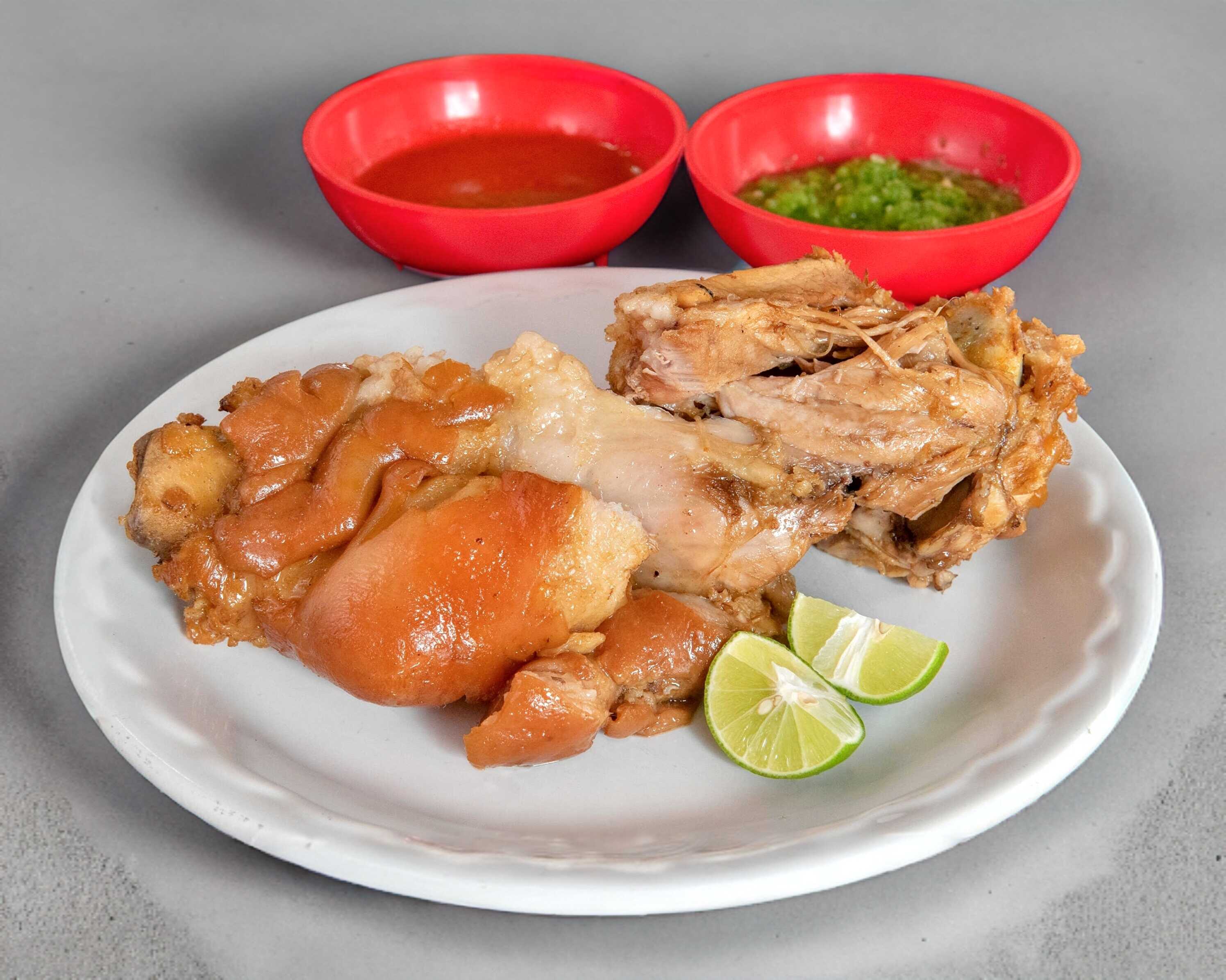 1/2 Manita de puerco, con verduras, salsas a elección y un limón.