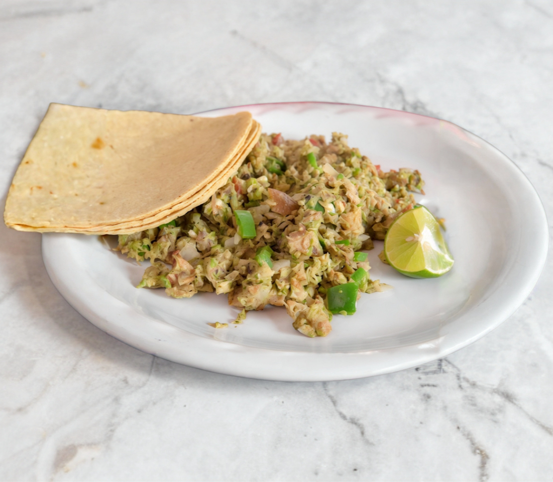Maciza y cuero. Incluye tortillas, salsas y limones.