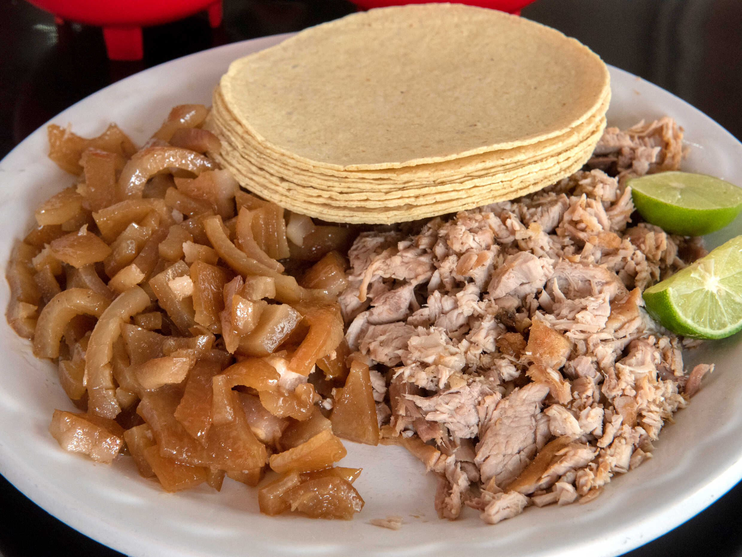 Carnitas a la plancha con huevo y salsa de su preferencia