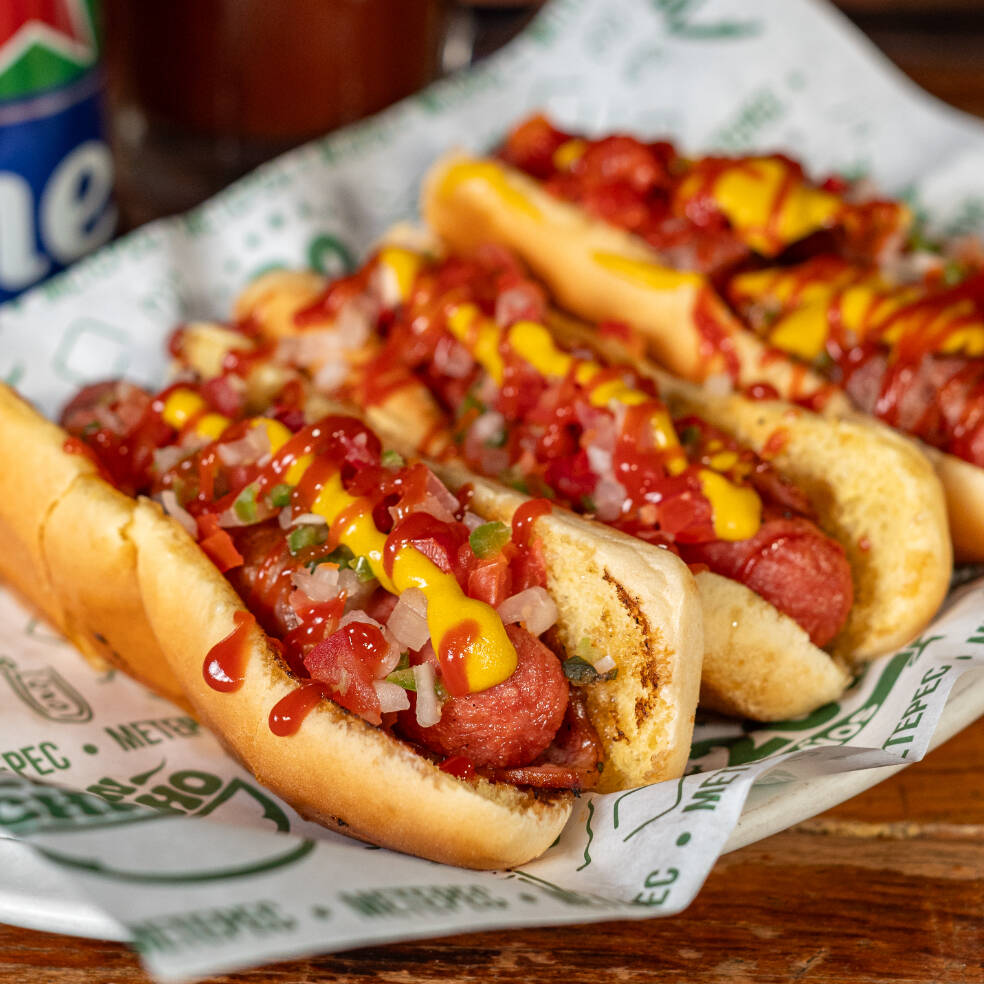3 hotdog tradicionales con tocino