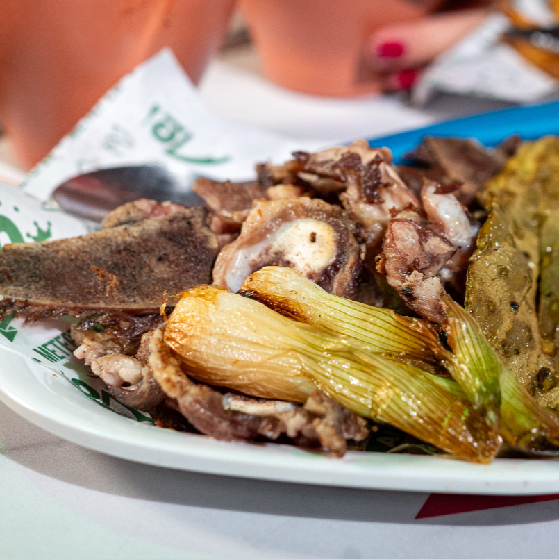 250 gr de ajuga acompañada de nopal y cebollas asadas. incluye tortillas, salsa y limones.