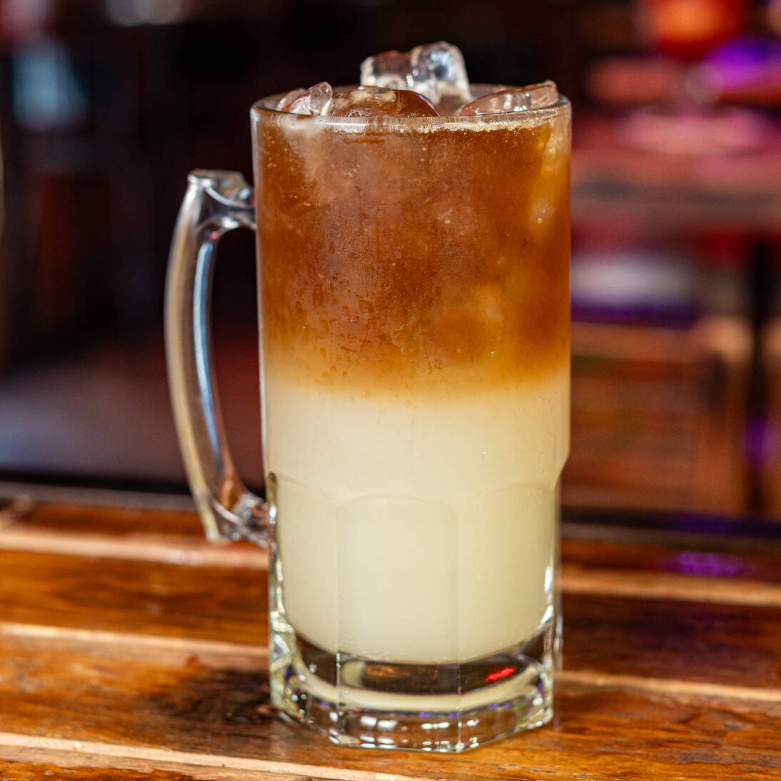 Ron blanco, limonada, cerveza obscura.